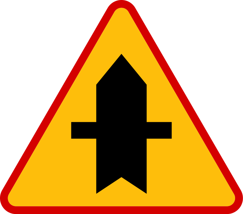 Znak A-6a - „skrzyżowanie z drogą podporządkowaną występującą po obu stronach”