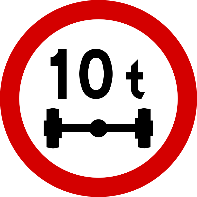 Znak B-19 - „zakaz wjazdu pojazdów o nacisku osi większym niż 10 t”