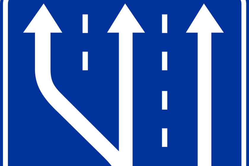 8. Który z poniższych znaków informuje o początku pasa ruchu?