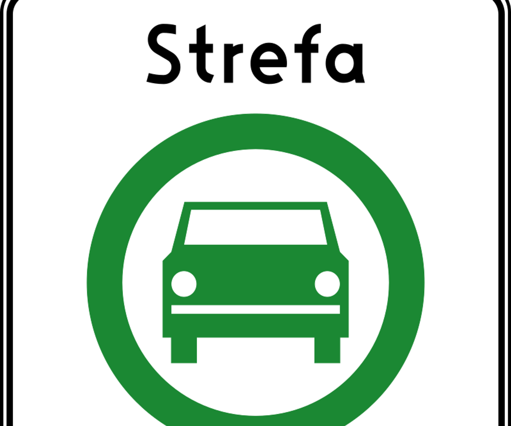 Znak D-54 - „strefa czystego transportu”. W strefie czystego transportu, w zależności od prawa lokalnego, mogą jeździć także pojazdy spalinowe Następne pytaniePytanie 7/15