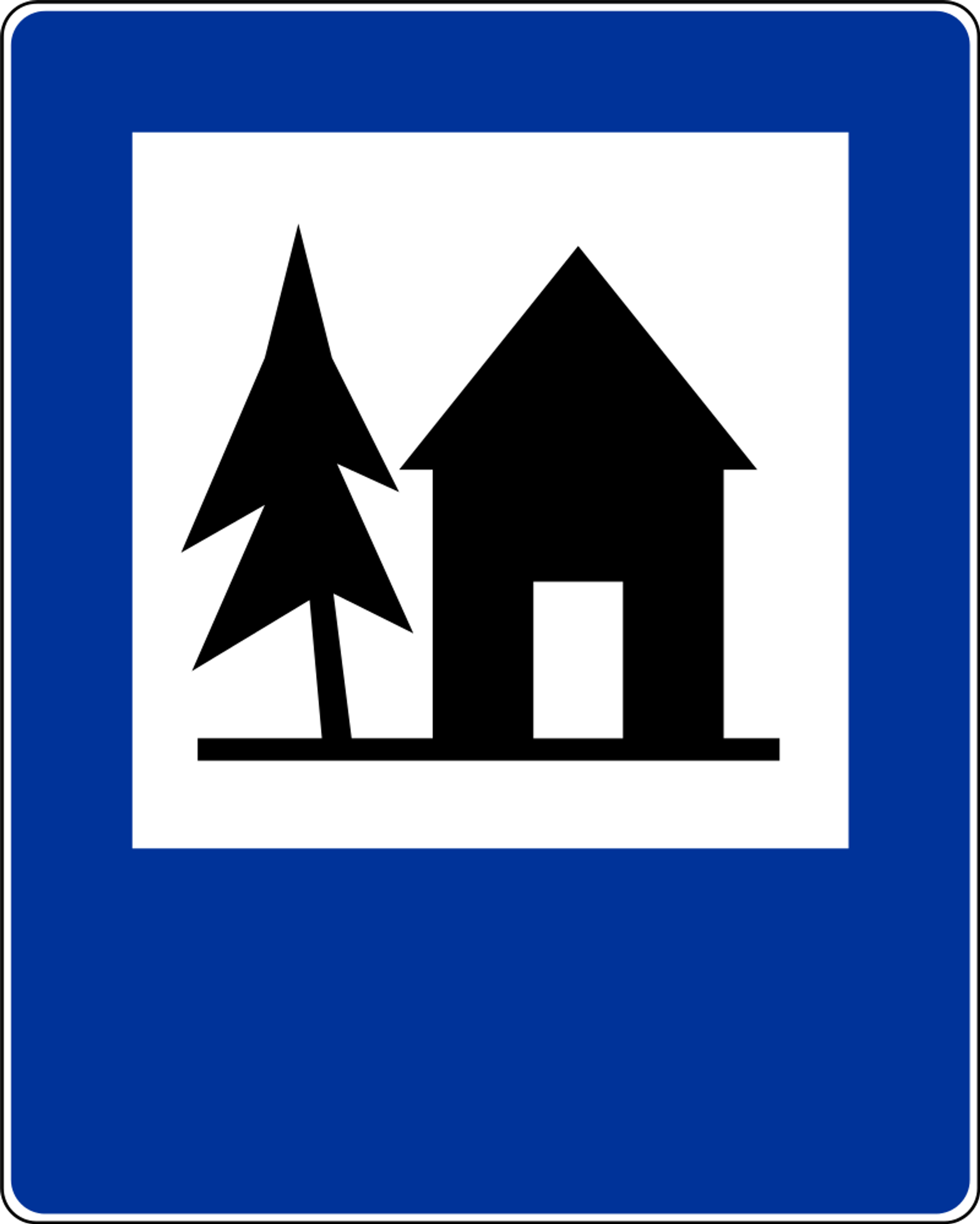Znak D-33 - „schronisko młodzieżowe”. Łatwo się pomylić, bo znak "Pole biwakowe" wygląda podobnie NASTĘPNE PYTANIEPytanie 6/15