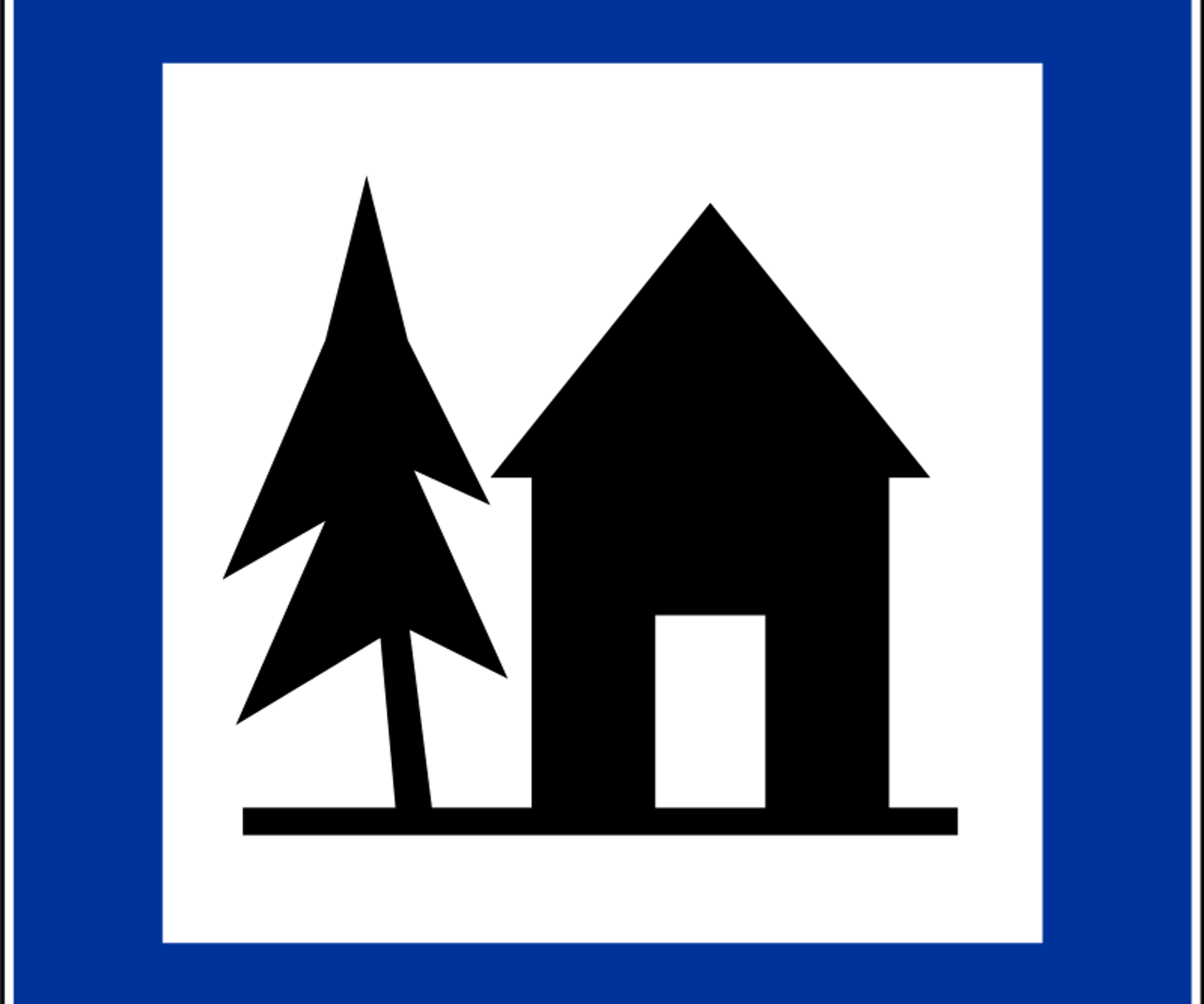 Znak D-33 - „schronisko młodzieżowe”. Łatwo się pomylić, bo znak "Pole biwakowe" wygląda podobnie Następne pytaniePytanie 6/15