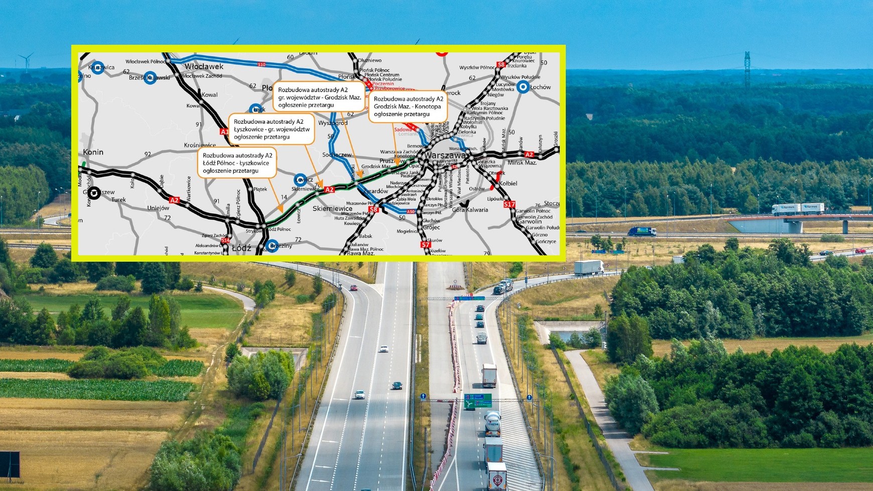 - Autostrada A2 między Łodzią a Warszawą zostanie rozbudowana poprzez dodanie trzeciego pasa ruchu