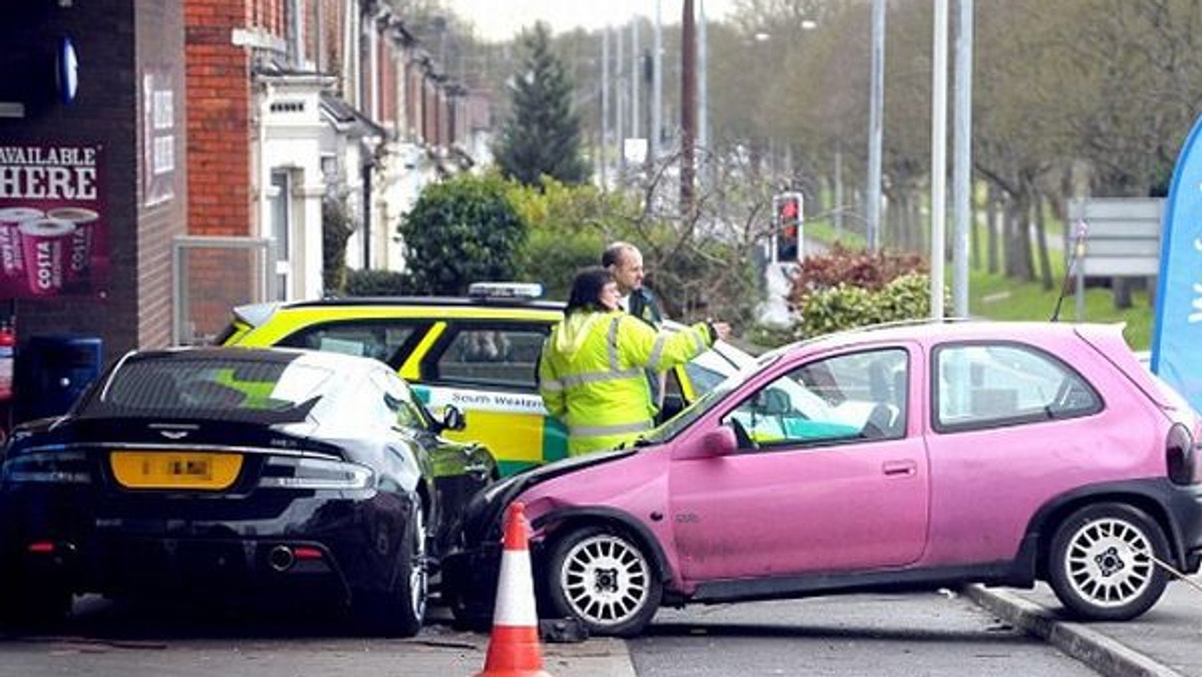 Sprawę opisuje internetowe wydanie brytyjskiego dziennika Daily Mail. Kierującej różową Corsą, Natashy Gregory, nie udało się zapanować nad pojazdem i jak opisywała to później na portalu społecznościowym "skosiła krawężnik", po czym wjechała w stojącego na stacji benzynowej Astona Martina.