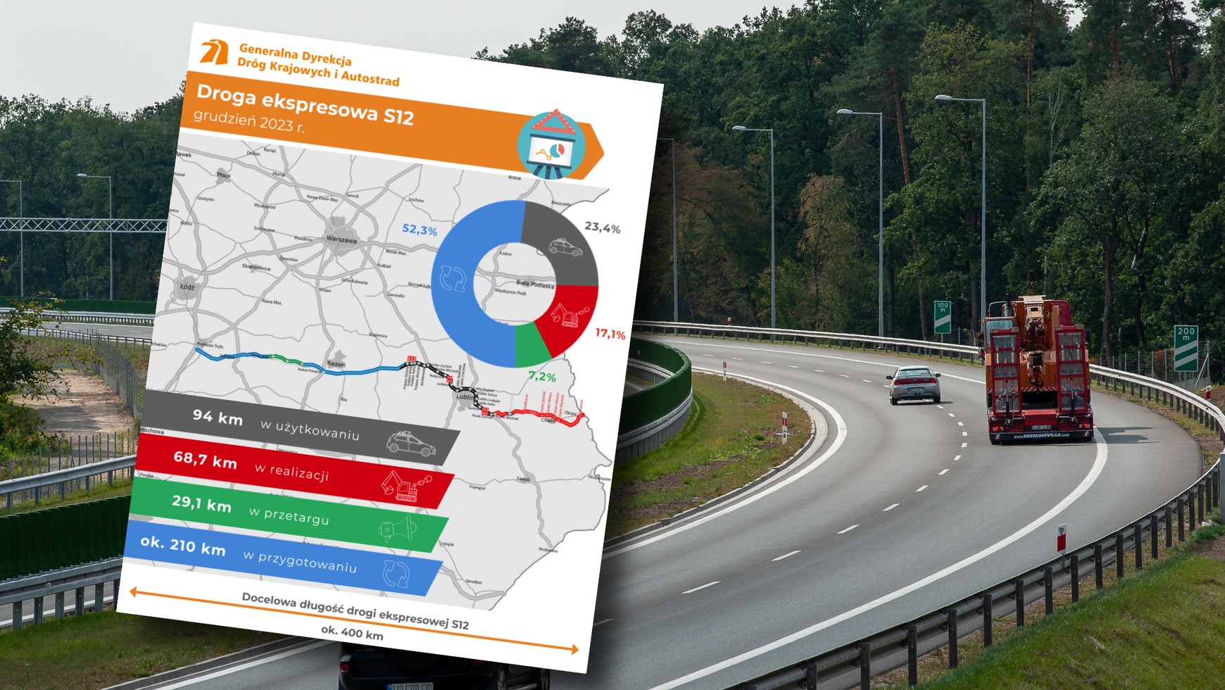 - Obecnie z planowanych 315 km drogi S12 dostępne jest około 90 km, a kolejne odcinki są w fazie projektowania i budowy.