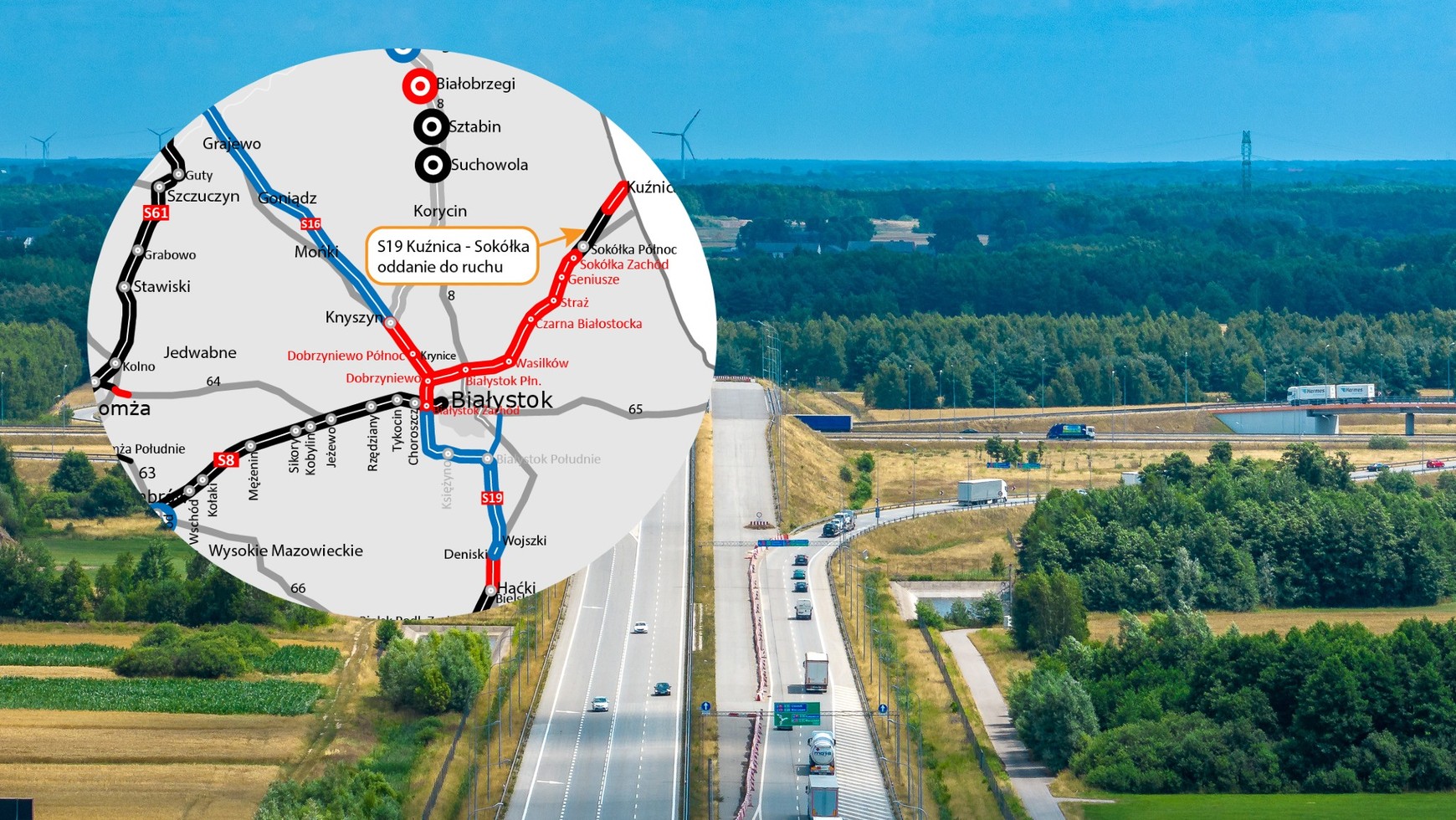 Nowy odcinek drogi ekspresowej S19 został oficjalnie otwarty 31 grudnia 2025 r. Trasa zapewnia połączenie węzła Kuźnica z węzłem Sokółka Północ i liczy 9,3 km długości. Pozostały fragment, prowadzący od przejścia granicznego do węzła Kuźnica, wciąż jest w budowie i według zapowiedzi będzie gotowy w pierwszych miesiącach przyszłego roku.