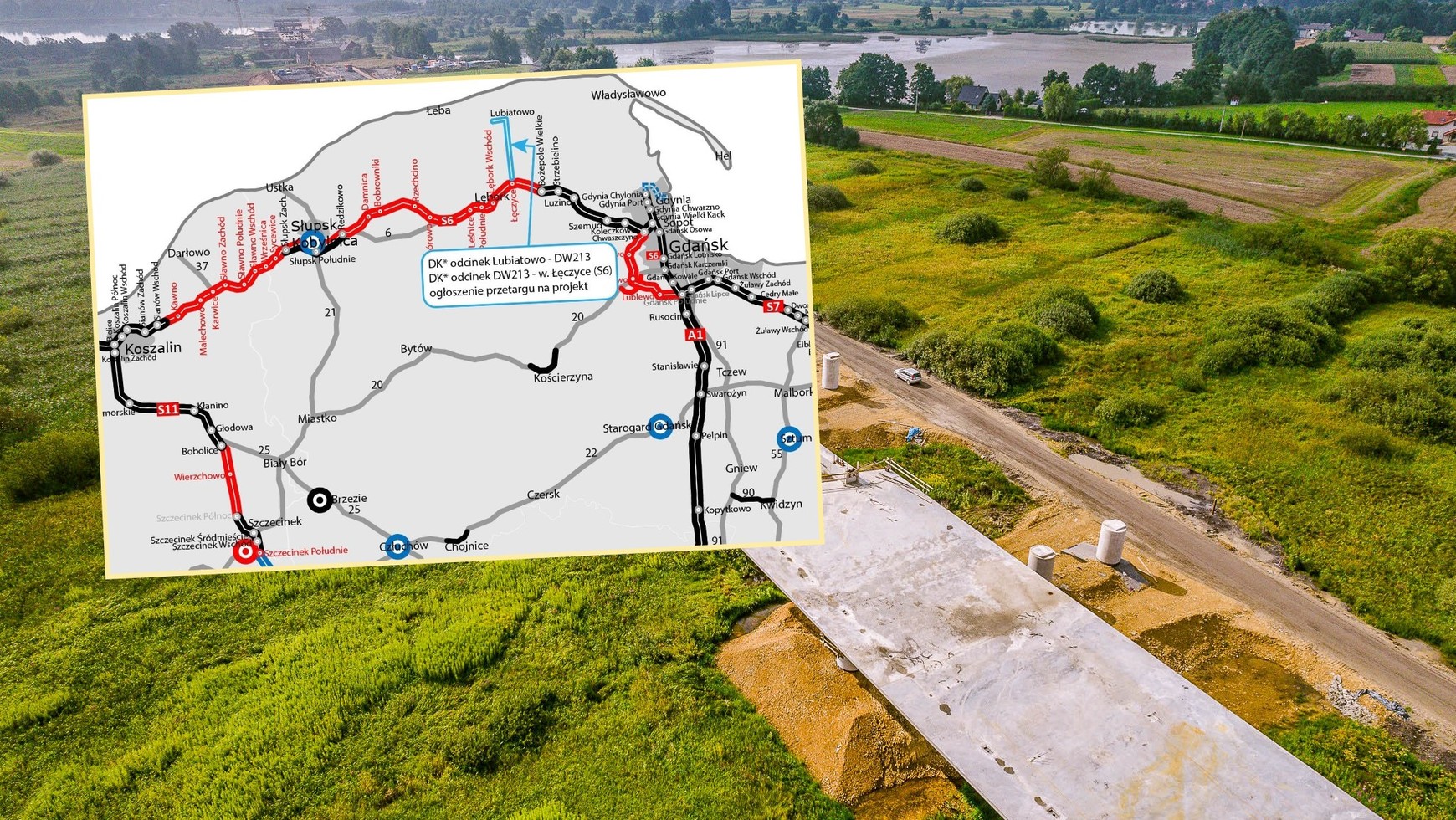 - Inwestycja obejmuje dwa odcinki: 11 km od Lubiatowa do DW213 i 15 km od DW213 do węzła Łęczyce na S6