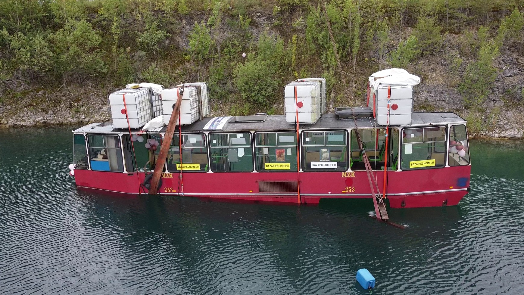 Tramwaj to wycofany przez MZK z użytku Konstal 805. Pojazd trafiłby na złom, ale zamiast tego otrzyma drugie życie na dnie sztucznego zbiornika wodnego i odtąd będzie służył miłośnikom podwodnych przeżyć do ćwiczeń.