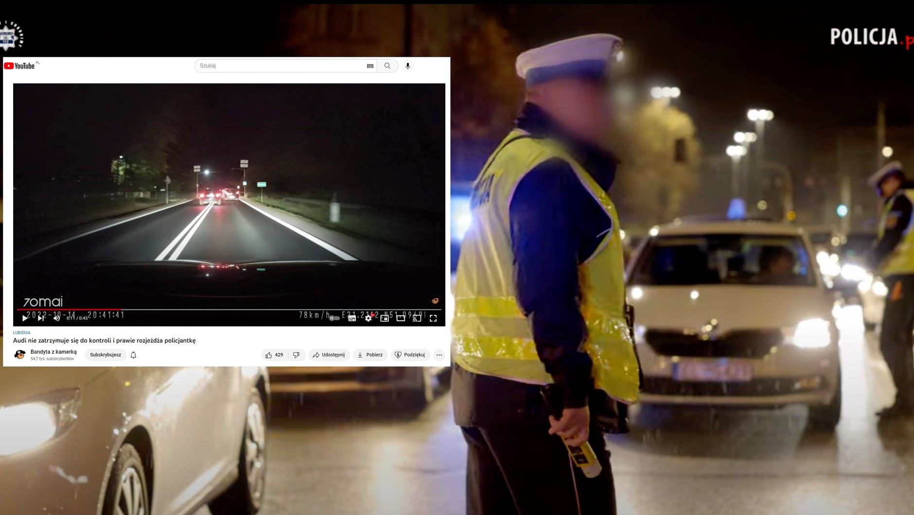 Kierujący Audi popełnił nie tylko kilka "typowych drogowych wykroczeń" na drodze w kierunku Ostrowca Świętokrzyskiego. Okazało się, że zignorował on także policyjną kontrolę drogową. W opisie filmu czytamy, iż kierowca zlekceważył także sygnały, jakie dawała policjantka usiłująca zatrzymać pojazd. Na opublikowanym video reakcja policji jest dość opieszała. Najwyraźniej nikomu nie śpieszyło się, by ruszyć w pościg. Niewykluczone, że funkcjonariuszom nie zależało na czasie, skoro i tak już kontrolowano inne auto.
