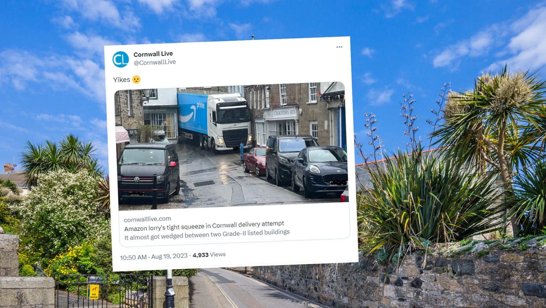Kierowca Amazona na długo zapamięta przejazd ciężarówką przez miasteczko St. Agnes w Kornwalii. Przewożąca paczki ciężarówka, którą prowadził, niemal utknęła w wąskiej uliczce.