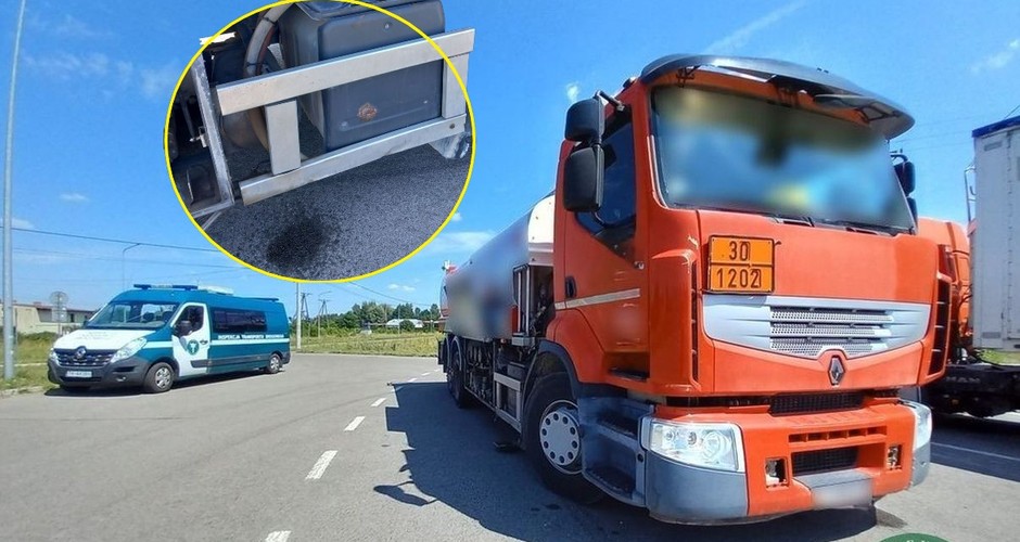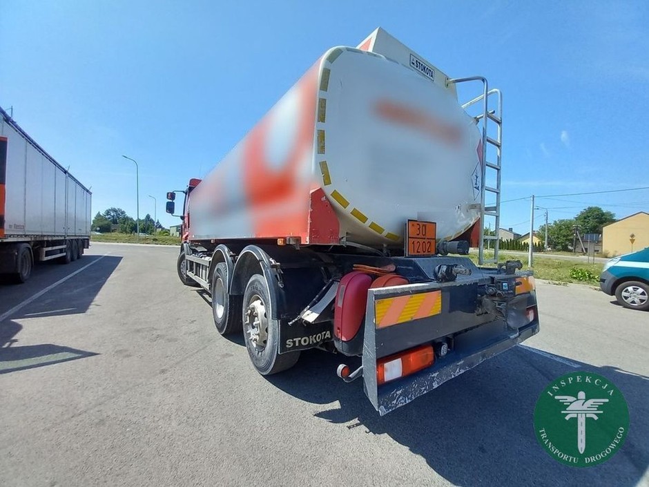 Już początek kontroli drogowej był fatalny. Podczas inspekcji stanu pojazdu ciężarowego funkcjonariusze dostrzegli nieszczelność urządzenia (pistoletu) służącego do rozładunku przewożonego towaru niebezpiecznego o oznaczeniu UN 1202. W wyniku tej usterki olej napędowy wydobywał się poza zbiornik. Kapał na asfalt, co stwarzało zagrożenie nie tylko dla innych uczestników ruchu, ale też środowiska naturalnego.