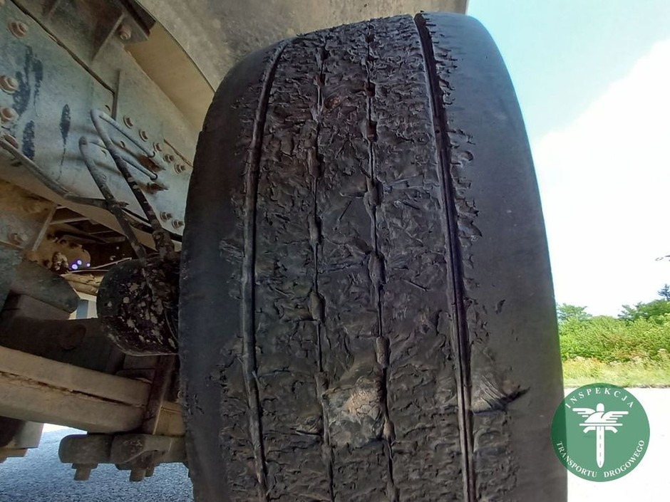 Kierowca cysterny miał na sumieniu coś jeszcze. Coś, czego inspektorzy ITD już dawno nie widzieli – z opon trzeciej osi pojazdu, zarówno po prawej, jak i lewej stronie, wystawały już druty. Starta i sparciała guma zdyskwalifikowała pojazd z dalszej jazdy.