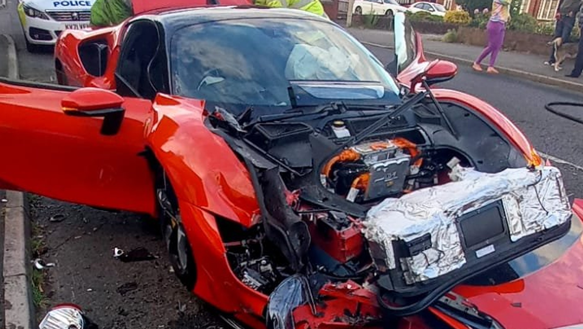 Ferrari SF90 Stradale wbite w zaparkowane auto zostało znalezione przez angielską policję w środę 25 maja 2022 r. w niewielkim miasteczku Halesowen, niedaleko Birmingham. Jak podaje serwis Carscoops, w wyniku incydentu nikt nie ucierpiał. Niestety na miejscu zdarzenia próżno było szukać sprawcy, czyli kierowcy Ferrari.