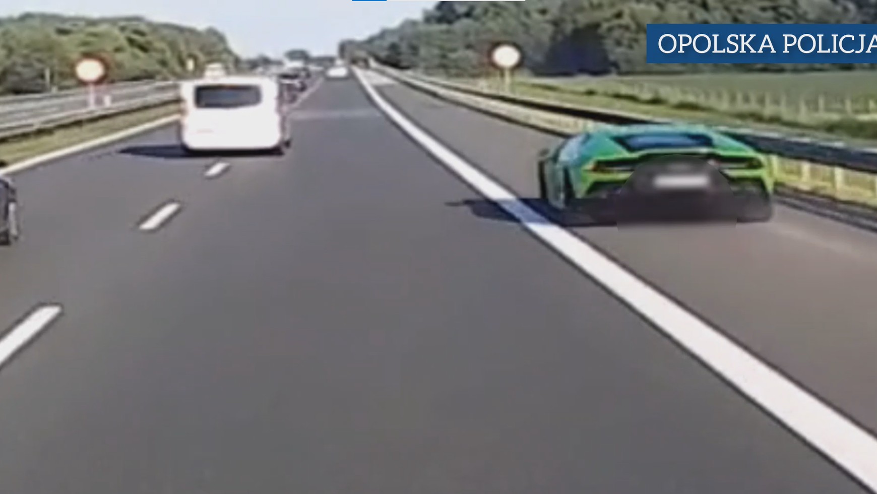 To na nim w pewnym momencie pojawia się jaskrawozielone Lamborghini Huracan, jadące szybciej niż wszystkie inne pojazdy. Auto wyprzedza najpierw nagrywającego, a następnie samochód przed nim i wraca na prawy pas tuż przed obszarem wyłączonym z ruchu.