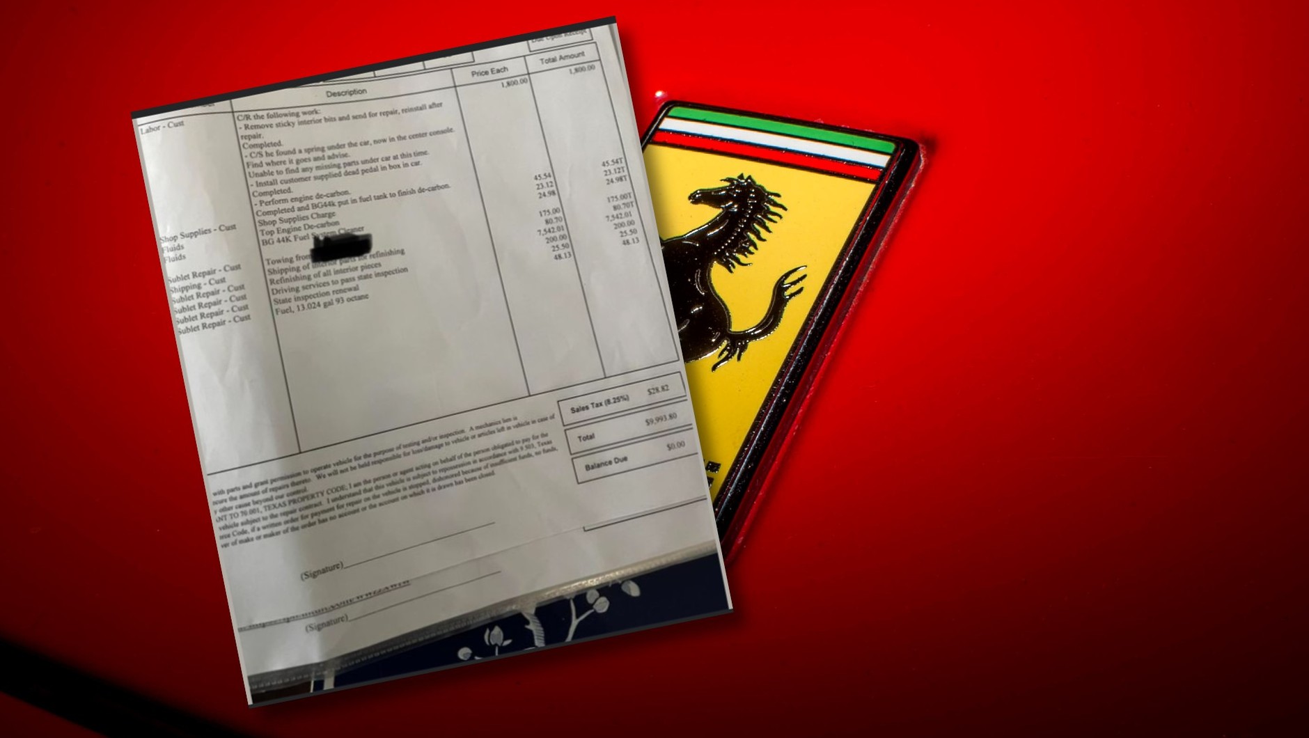 Właściciela Ferrari najbardziej zabolało to, że tylko za wymianę przycisków oraz za kilka innych rzeczy ujętych na tym samym rachunku musiał w sumie zapłacić niemal 10 tys. dol, co w przeliczeniu daje niemal 44 tys. zł.