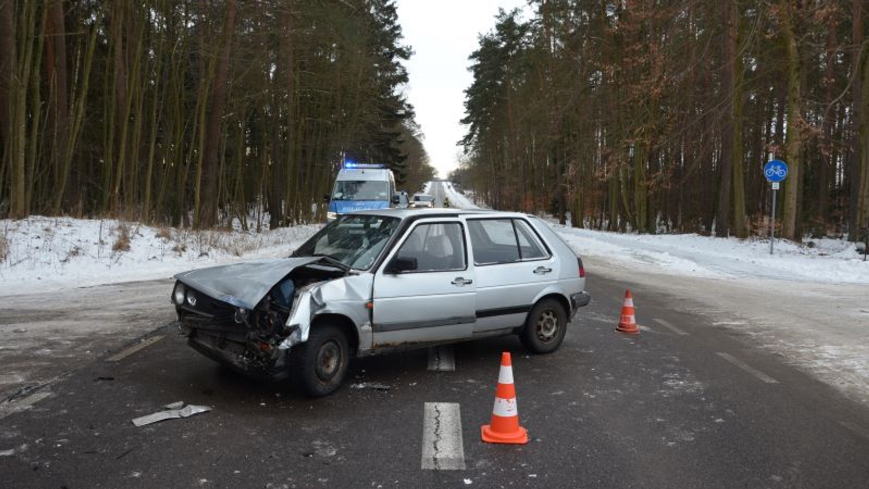 Zgłoszenie o zdarzeniu drogowym wpłynęło do Komendy Powiatowej Policji w Chojnicach o godzinie 9:30. Na miejsce natychmiast udał się patrol drogówki. Ze wstępnych ustaleń wynika, że 54-letni kierowca Golfa podczas wykonywania skrętu w lewo w kierunku miejscowości Kłodawa nie ustąpił pierwszeństwa przejazdu prawidłowo jadącemu samochodowi ciężarowemu. Niestety, doprowadziło to do zderzenia.