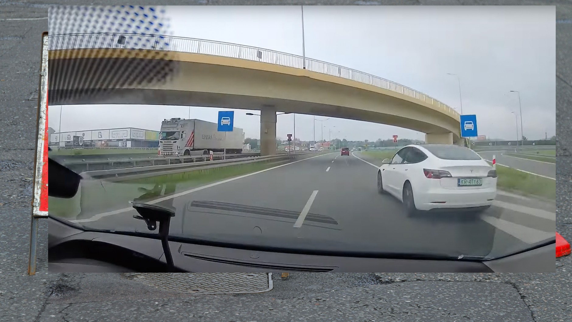 Tak czy inaczej, stało się. Na nagraniu widzimy polskiego kierowcę, który zachowuje się jak naśladowca Froga. Opublikowaliśmy niedawno raport ADAC, w którym uznano Model 3 za trudny w obsłudze. Być może ten kierujący chciał np. włączyć klimatyzację i niechcący złamał przepisy? A może ścigał się z BMW serii 7, które pojawia się na lewym pasie zaraz po Tesli?