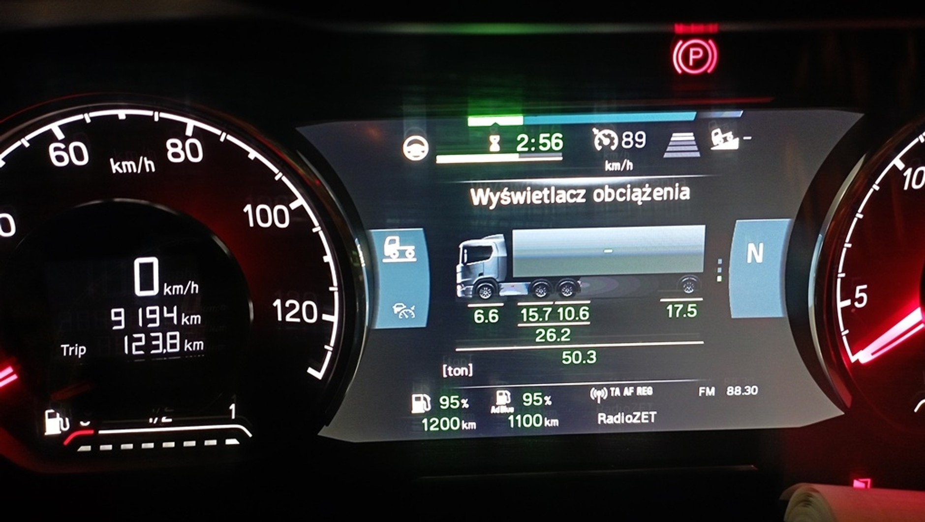 Wytypowana do kontroli ciężarówkę poddano standardowym procedurom. Ważenie wykazało, że zespół pojazdów z ładunkiem ważył 47,55 tony zamiast przepisowych 40. Inspektorzy z Gorzowa Wielkopolskiego wykryli także przeciążoną podwójną oś napędową — 25,1 tony to o 7,1 tony za dużo. Co istotne, kierowca doskonale zdawał sobie z tego sprawę, ponieważ taka informacja wyświetlała się tuż przed jego oczami na komputerze pokładowym pojazdu.