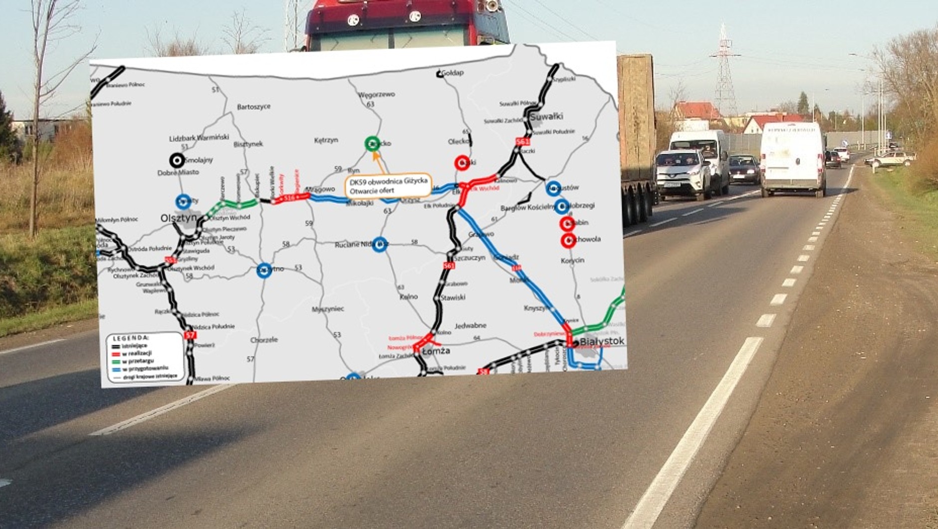 "Istniejąca obwodnica Giżycka (ul. Obwodowa) ma obecnie w większości przekrój jednojezdniowy. Jej rozbudowa będzie kontynuacją zakończonej w 2021 roku inwestycji obejmującej budowę ronda na skrzyżowaniu DK59 z ulicą Świderską wraz z rozbudową istniejącego układu drogowego do przekroju dwujezdniowego na odcinku około 1 km. Planowana inwestycja obejmie kolejne 1,5 km DK59 od wyżej wymienionego ronda w kierunku Wilkas" — wyjaśnia GDDKiA.