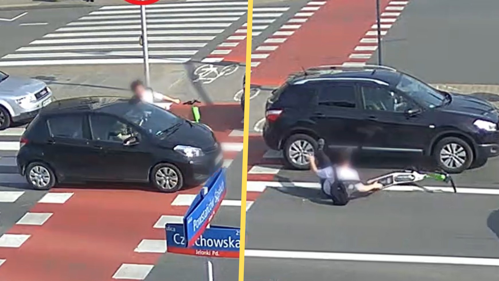 Dzięki nagraniom z monitoringu miejskiego funkcjonariusze szybko ustalili numer rejestracyjny Toyoty, a dane użytkownika hulajnogi przekazała firma wypożyczająca pojazd. Ustalono, że sprawcą zdarzenia był 20-latek, który wjechał na skrzyżowanie na czerwonym świetle. Na szczęście nie odniósł obrażeń.