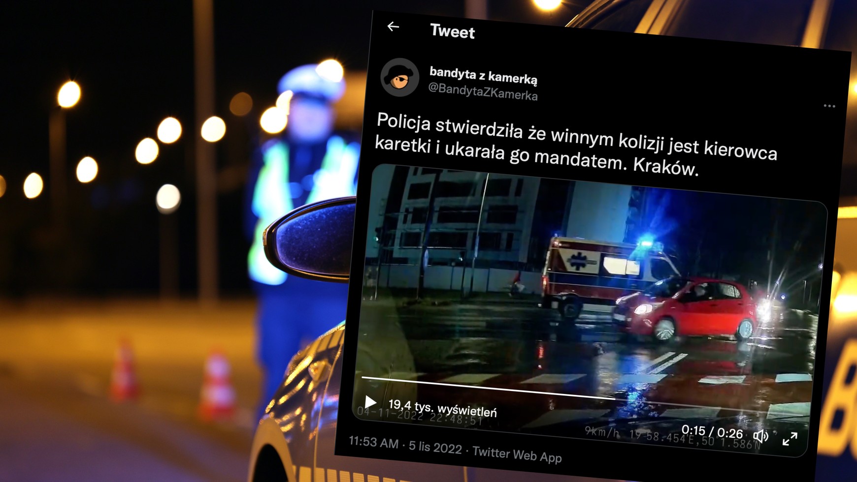 Sytuacja byłaby łatwa do wyjaśnienia, gdyby nie to, że ambulans miał włączone sygnały świetlne i dźwiękowe, co słychać na nagraniu, a zatem był pojazdem uprzywilejowanym. Z informacji opublikowanej przez autora posta wynika, że policja winnym uznała kierowcę karetki i ukarała go mandatem.