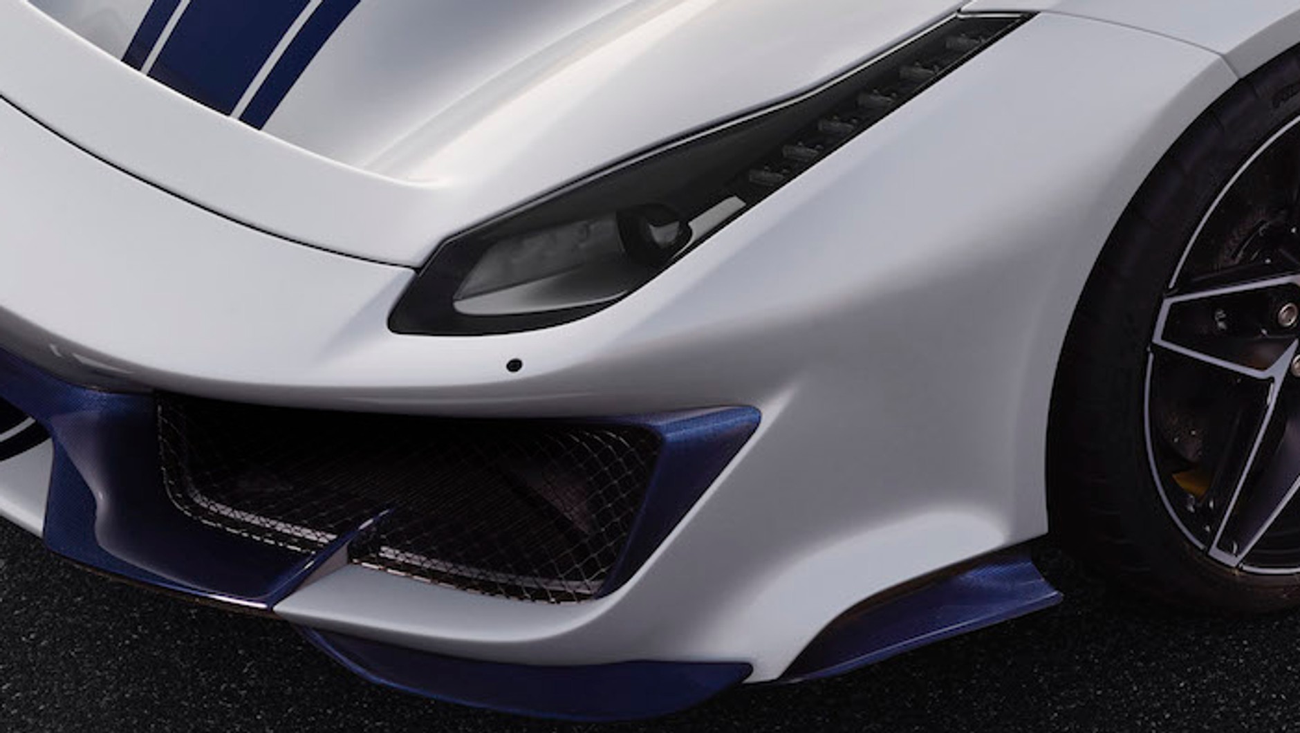 Na nowo udostepnionym zdjęciu w roli głównej widzimy niebieskie Ferrari 488 Pista Spider - to najostrzejsza odmiana tego modelu, w wersji z otwieranym dachem.