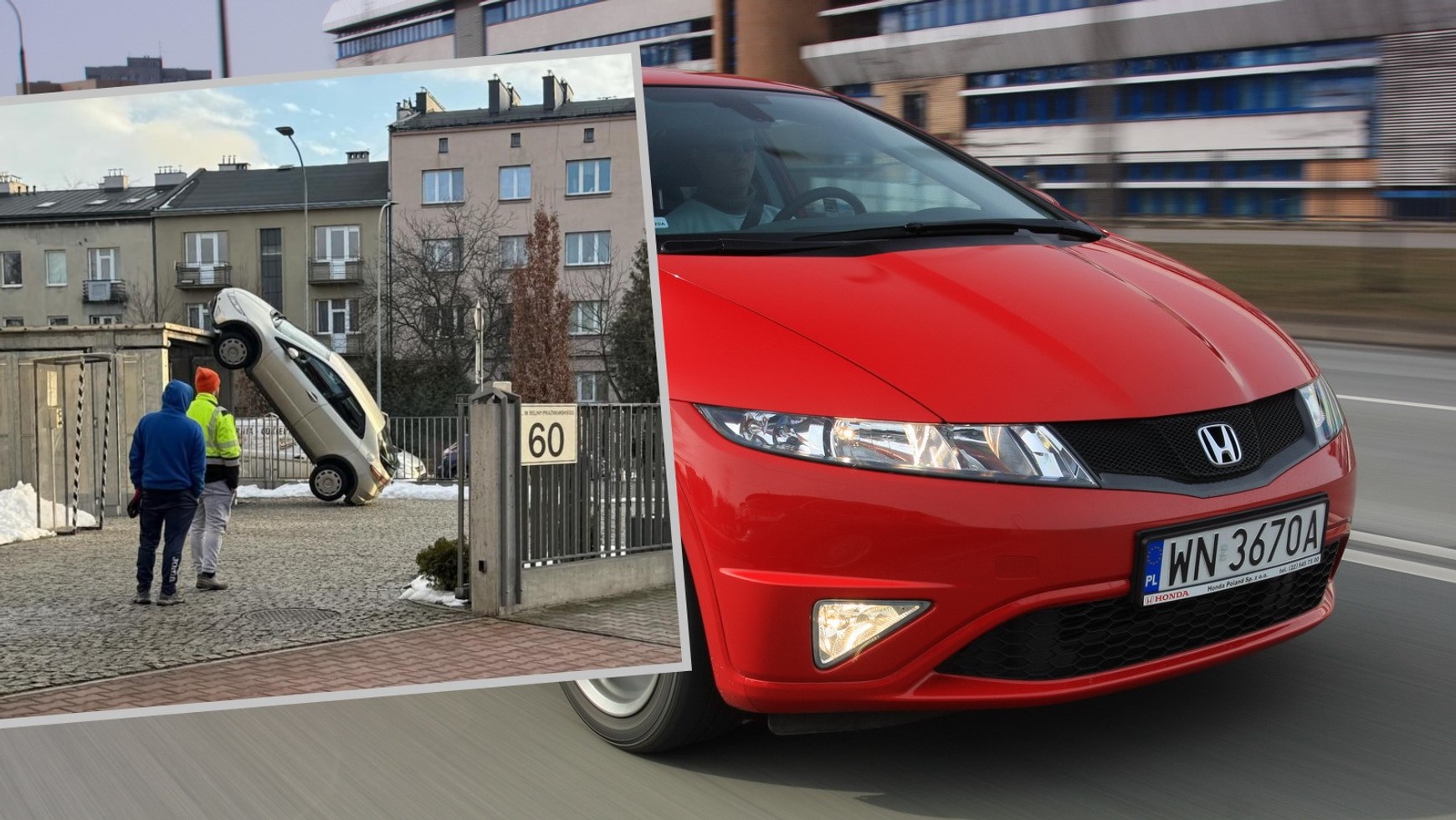 Honda Civic ustawiona w pionie w Krakowie. Jak do tego doszło?