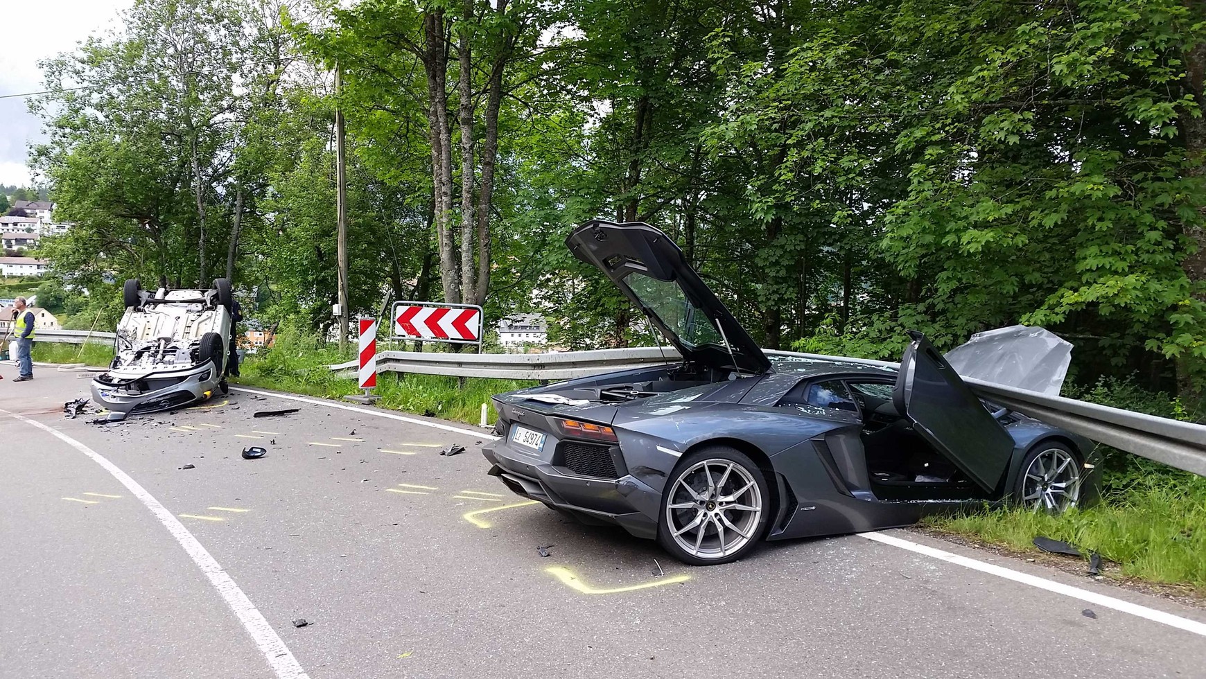 Jak dowiadujemy się z raportu policji 700-konne Lamborghini na górskiej drodze niezgodnie z przepisami wyprzedzało BMW, niestety z przeciwka nadjechała Corsa. Kierowca Lamborghini próbował uniknąć zderzenia, ale podczas ratowania sytuacji otarł się o wyprzedzane auto, a następnie zderzył się czołowo z Corsą.