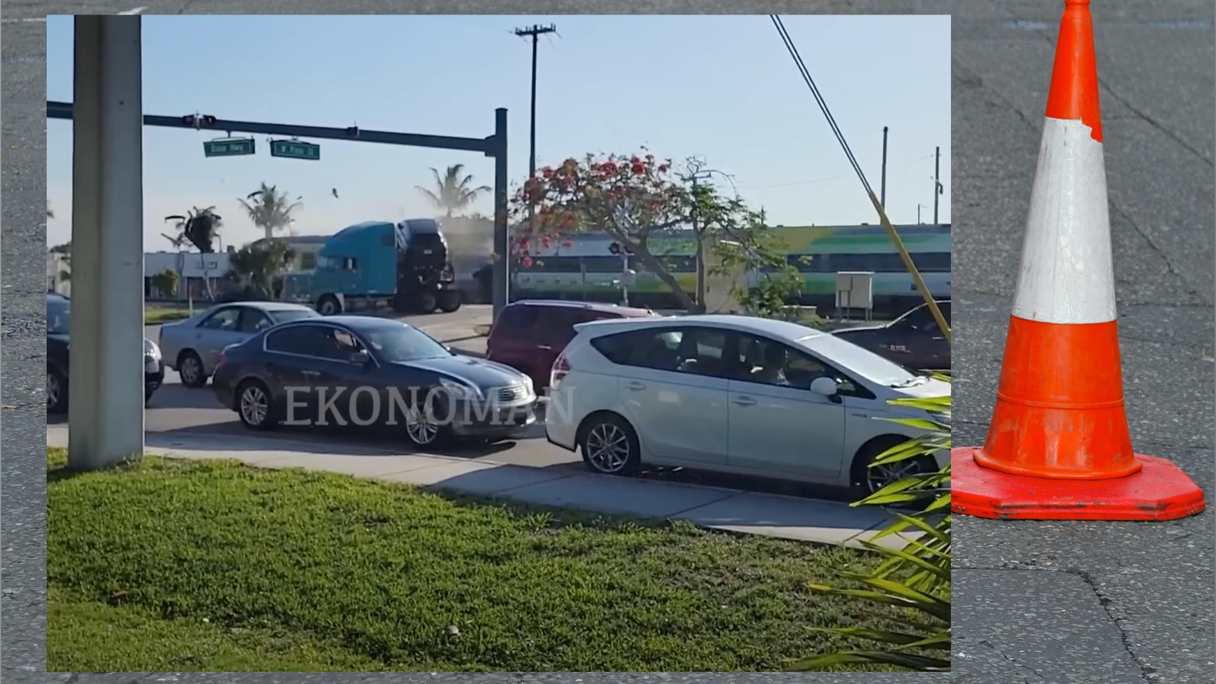 Serwis carscoops.com twierdzi, że kolizje pomiędzy pociągami Brightline a innymi pojazdami są na Florydzie częstym zjawiskiem. Jak to możliwe skoro przejazdy kolejowe są oznakowane? Polecamy zobaczyć przebieg kolizji pociągu z samochodem osobowym w najdrobniejszych szczegółach — byliśmy świadkami takiego kontrolowanego wypadku.