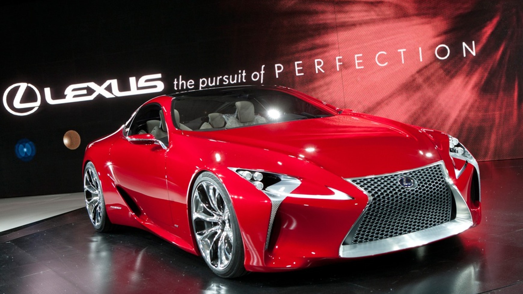 Ogromne stoisko Toyoty oświetla gigantyczna bateria jupiterów. Z głośników płyną mocne, basowe brzmienia, lecz nagle zapada cisza i przedstawiciel Lexusa mówi: Ladies and gentlemen – the new Lexus LF-LC. Ledwie udaje mu się dokończyć zdanie, gdy hostessy odkrywają prototyp. Wtedy rozlega się burza oklasków i dźwięk migawek aparatów.