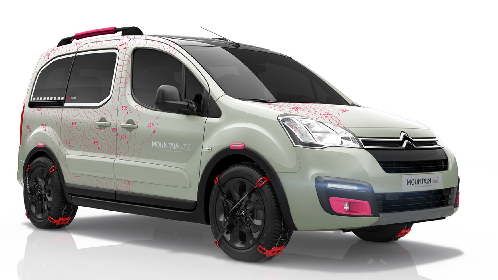 Studyjna wersja Berlingo Mountain Vibe stanowi lifestylowa interpretację, tego co trafi do produkcji seryjnej. Auto ma zwiększony prześwit, relingi dachowe umożliwiające przewożenia rowerów lub sprzętu do pływania. Jazdę w trudnych warunkach zimowych ułatwiają łańcuchy śniegowe. Nadwozie otrzymało kombinację barw Pink i Mountain Green, z którymi kontrastują czarne elementy.