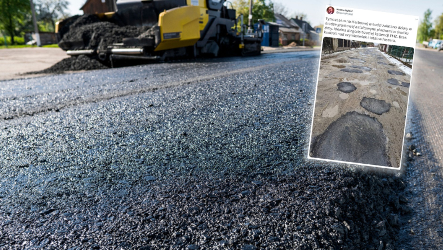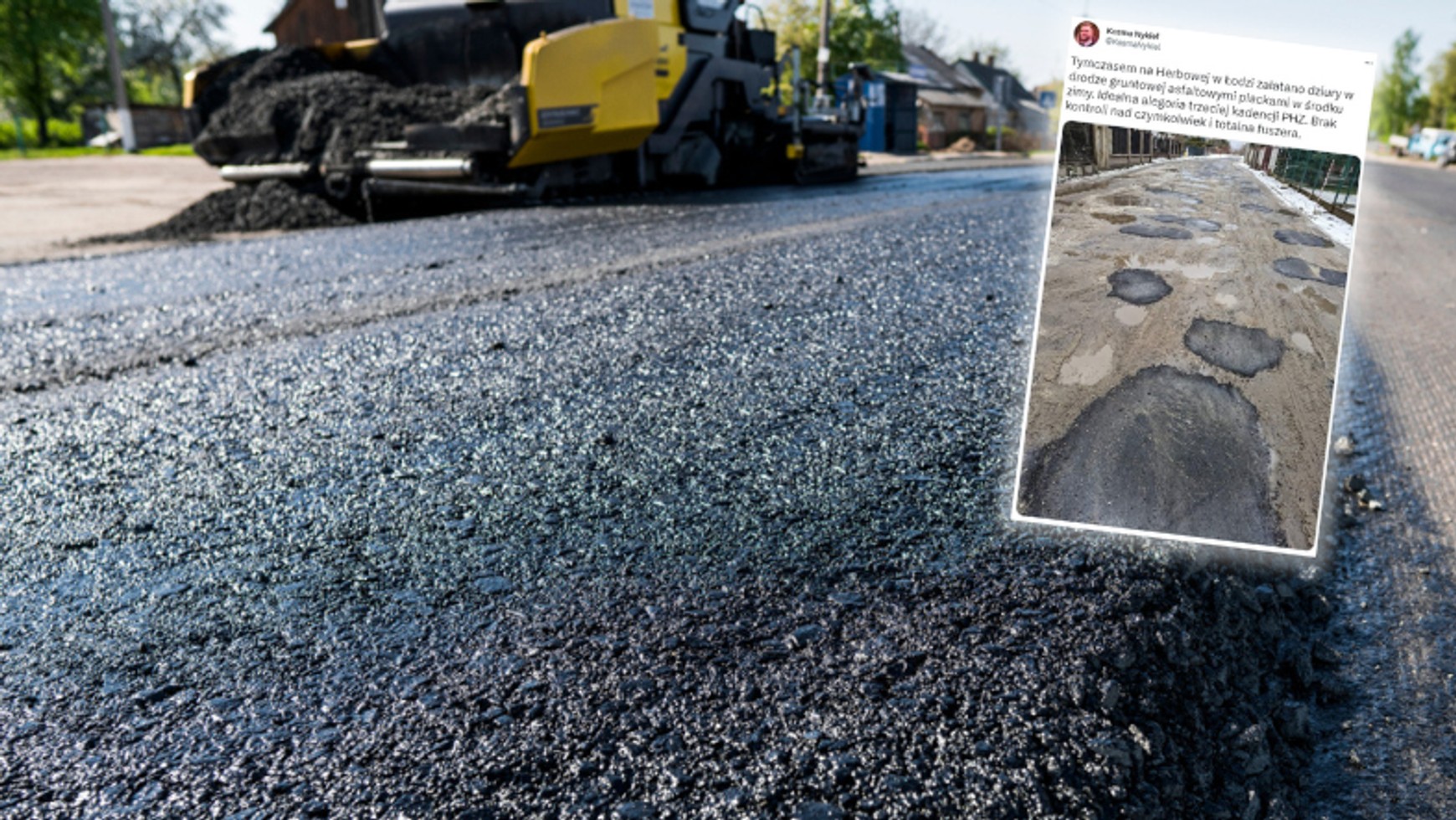 "Tymczasem na Herbowej w Łodzi załatano dziury w drodze gruntowej asfaltowymi plackami w środku zimy. Idealna alegoria trzeciej kadencji prezydent Hanny Zdanowskiej. Brak kontroli nad czymkolwiek i totalna fuszera" — ocenia Nykiel.