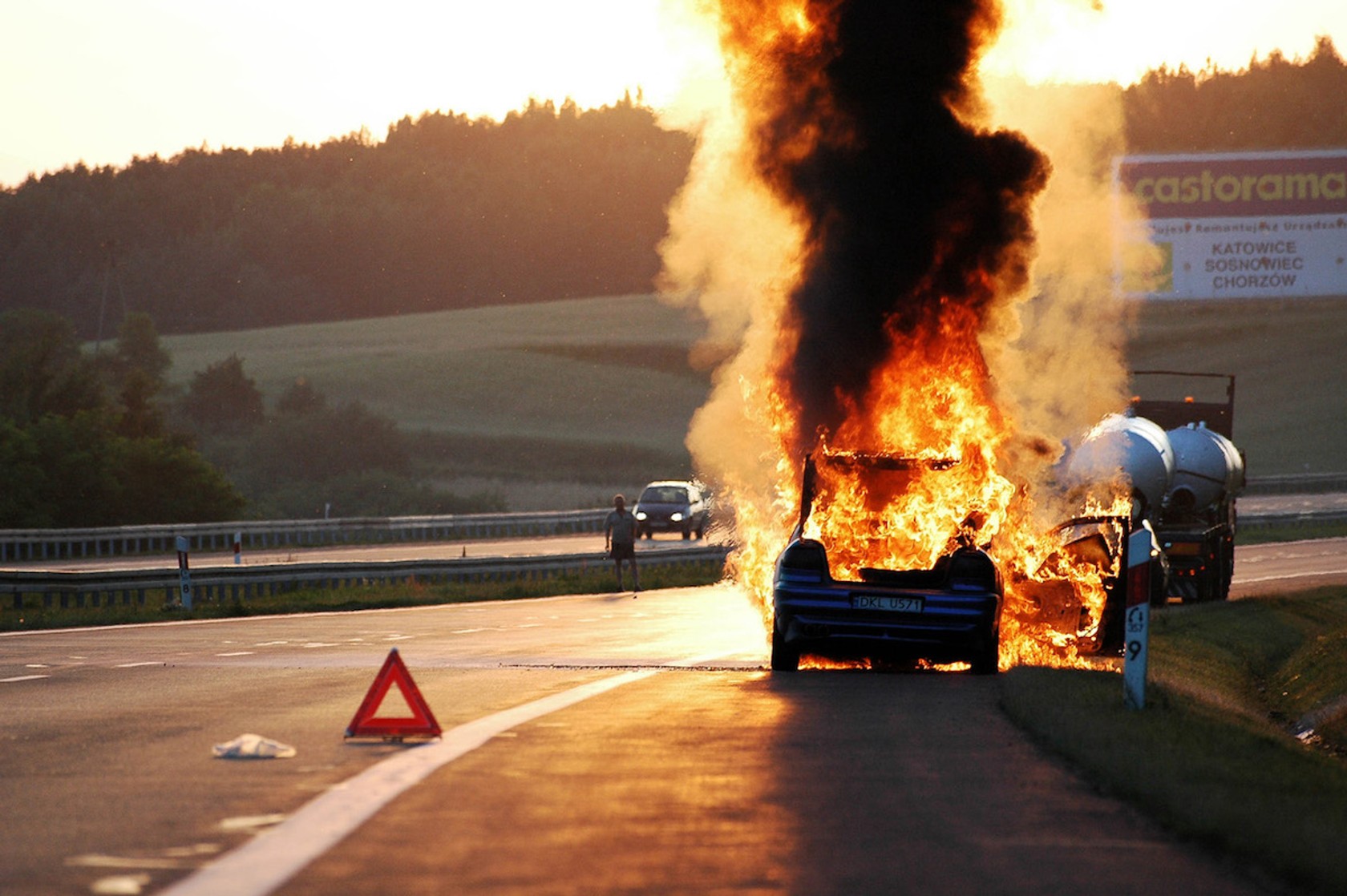 Jesteś uczestnikiem lub świadkiem wypadku drogowego. Jak należy postąpić, gdy na poszkodowanym pali się ubranie?