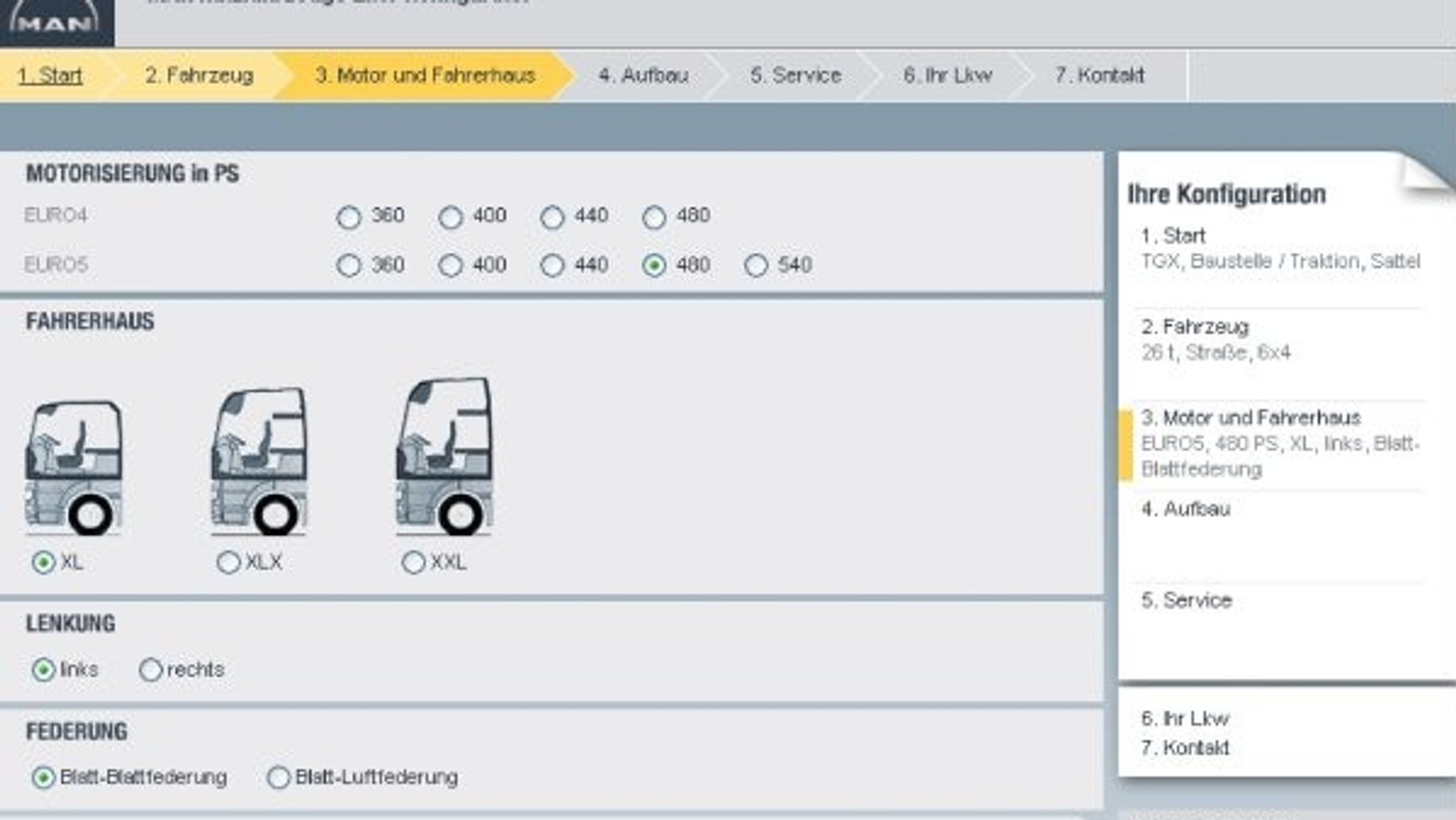 MAN Nutzfahrzeuge zaprezentował podczas targów IAA 2008 w Hanowerze wraz z nowymi produktami konfigurator pojazdów ciężarowych w trybie online. Prowadzi on klientów i zainteresowanych przez program produktów MAN i zestawia odpowiednią ofertę pojazdu. Na życzenie klienta pracownik działu dystrybucji kontaktuje się z nim w przeciągu 24 godzin.
