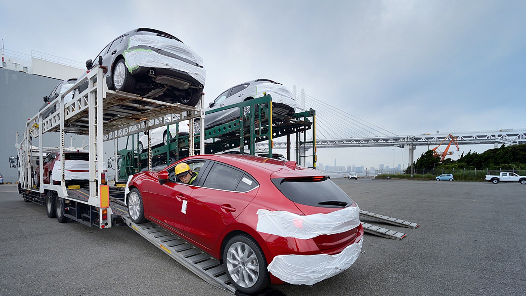 Nowe Mazdy3 w wersji hatchback z silnikami benzynowymi SKYACTIV-G 2.0 o mocy 120 KM pod maską pokonały drogę morską z japońskiej fabryki Hofu w pobliżu Hiroszimy do największego rosyjskiego portu na Pacyfiku na pokładzie Makassar Highway, towarowca o wyporności 17 000 ton.