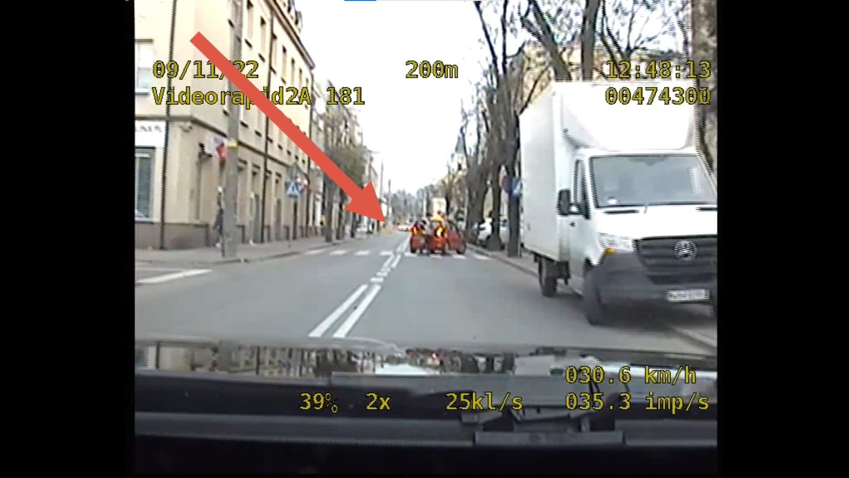 Wszystko się nagrało na wideorejestratorze zamontowanym w radiowozie. Na filmie widać, jak czerwona Skoda zaczyna cofać akurat w momencie, gdy piesza przechodzi z tyłu auta po przejściu dla pieszych. Kobieta, aby nie zostać uderzona przez wyjeżdżające auto, musiała uciekać na prawo.