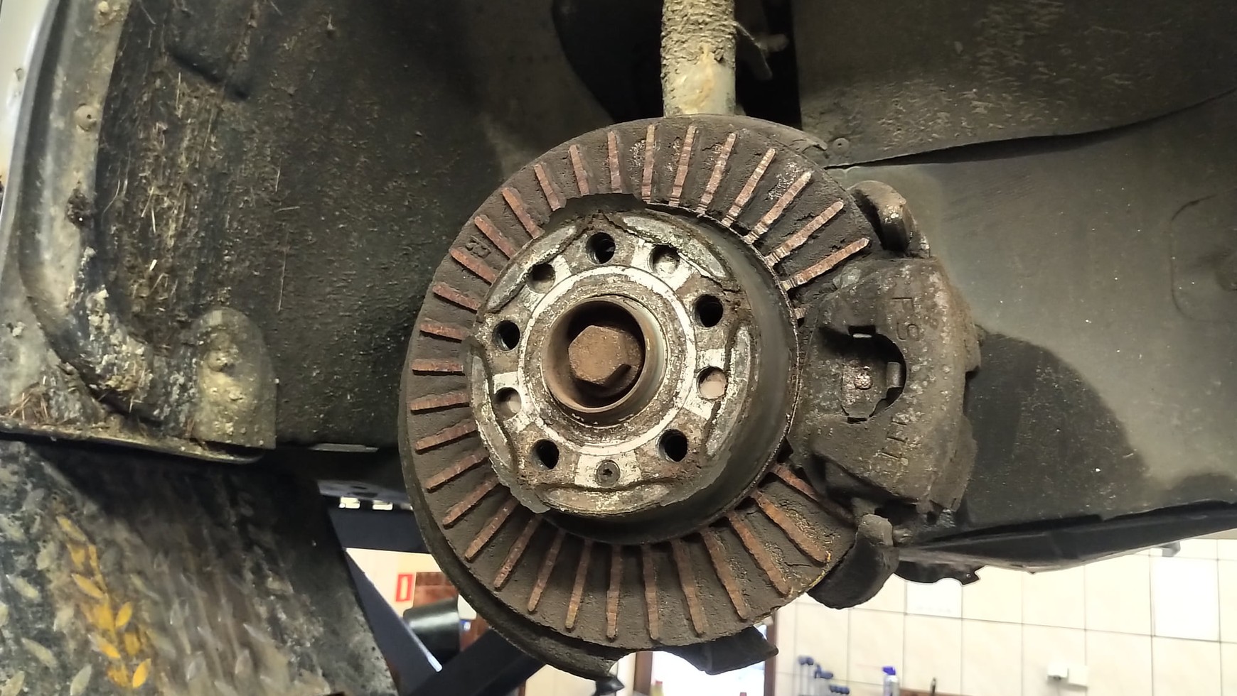 Jak napisał autor posta, właściciel samochodu poprosił o weryfikację układu hamulcowego, ponieważ “coś bije przy hamowaniu”. Przyczyn nie trzeba było długo szukać. Tarcza hamulcowa miała kompletnie wytartą jedną powierzchnię cierną, tak że widoczne były żebra od tarczy wentylowanej. Również klocki były zniszczone na tyle, że nawet blacha była zdarta.