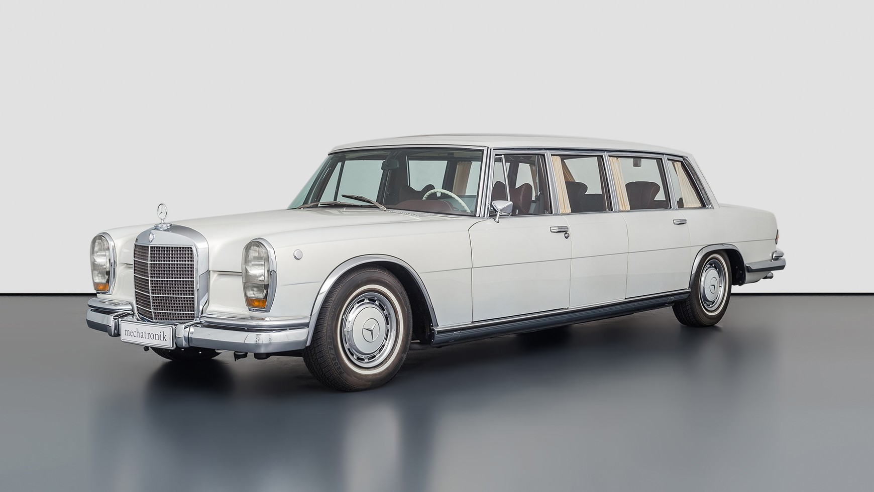 W latach 1964-1981 najlepsi fachowcy Daimlera produkowali model W 100 ręcznie. Już fabryczny Pullman mógł być konfigurowany na wiele sposobów. Montowano w nim czworo, albo sześcioro drzwi tej samej wielkości. Ale wersja 600 mogła mieć też - tak jak prezentowany egzemplarz - czworo drzwi, a pomiędzy nimi łączniki. Dzięki temu w kabinie były dwa rzędy siedzeń, w tym jeden odwrócony tyłem do kierunku jazdy.