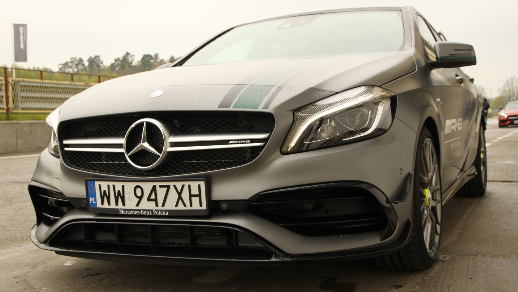 Mercedesowi A45 AMG daleko jest do zwyczajnej Klasy A. Specjaliści z oddziału AMG Mercedesa własnoręcznie zadbali o zestrojenie jednostki napędowej, która trafiła pod jego maskę. Samochód ma pozwolić klientom zakosztować dawki emocji, jakie mają do dyspozycji na co dzień wyłącznie kierowcy wyścigowi. Nam dostała się jeszcze ciekawsza wersja oznaczona plakietką Championship Edition. Specjalny model pojazdu powstał, aby uczcić zwycięstwa teamu Mercedesa w zeszłorocznym sezonie Formuły 1. W końcu koncerny motoryzacyjne wiedzą doskonale, że najlepszym sposobem na świętowanie jest stworzenie nowego modelu samochodu. Mercedes A45 AMG Championship Edition był jedną z ciekawostek AMG Lady Training, czyli szkolenia trenerów AMG przeznaczonego wyłącznie dla kobiet.