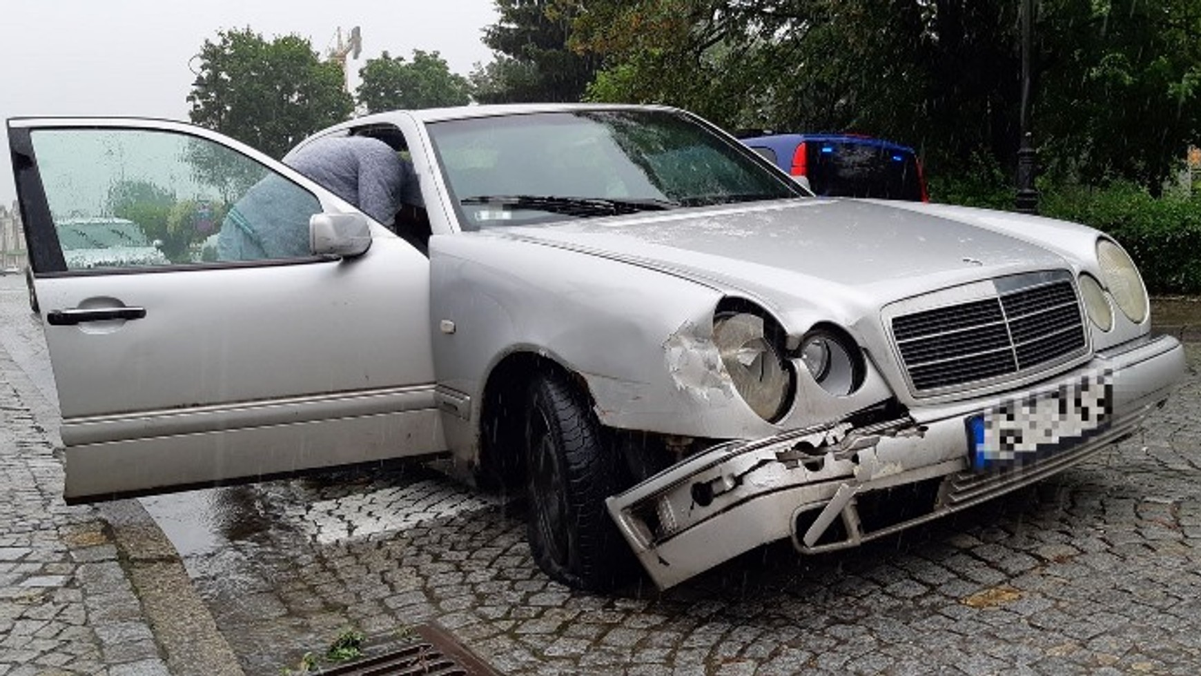 Srebrny Mercedes wyglądał jak wrak. Okazało się, że jego stan techniczny rzeczywiście taki był. Auto z uszkodzonym przodem i z oponami bez powietrza nie umknął inspektorom dolnośląskiej ITD.