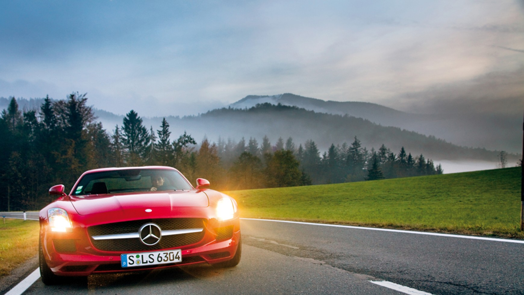 Dwusprzęgłowa skrzynia biegów błyskawicznie i płynnie zmienia przełożenia. Wejście na wyższy bieg trwa ledwie mierzalne 100 milisekund, powrotowi na niższy akompaniuje grzmot międzygazu. To wywołuje gęsią skórkę – od uszu po czubki palców. 537,7 km Alpejska droga B 164 w kierunku zachodnim. Pogłos SLS-a wywołuje szczególne wrażenie. W tunelu tynk zaczyna odpadać ze ścian przy 5000 obr./min, na wąskich przejazdach przez miejscowości głowy mieszkańców odwracają się już przy ryku częściowo obciążonego V8, a na otwartej przestrzeni brzmienie uwolnionej mocy pozostawia za sobą przestraszone dzieci.