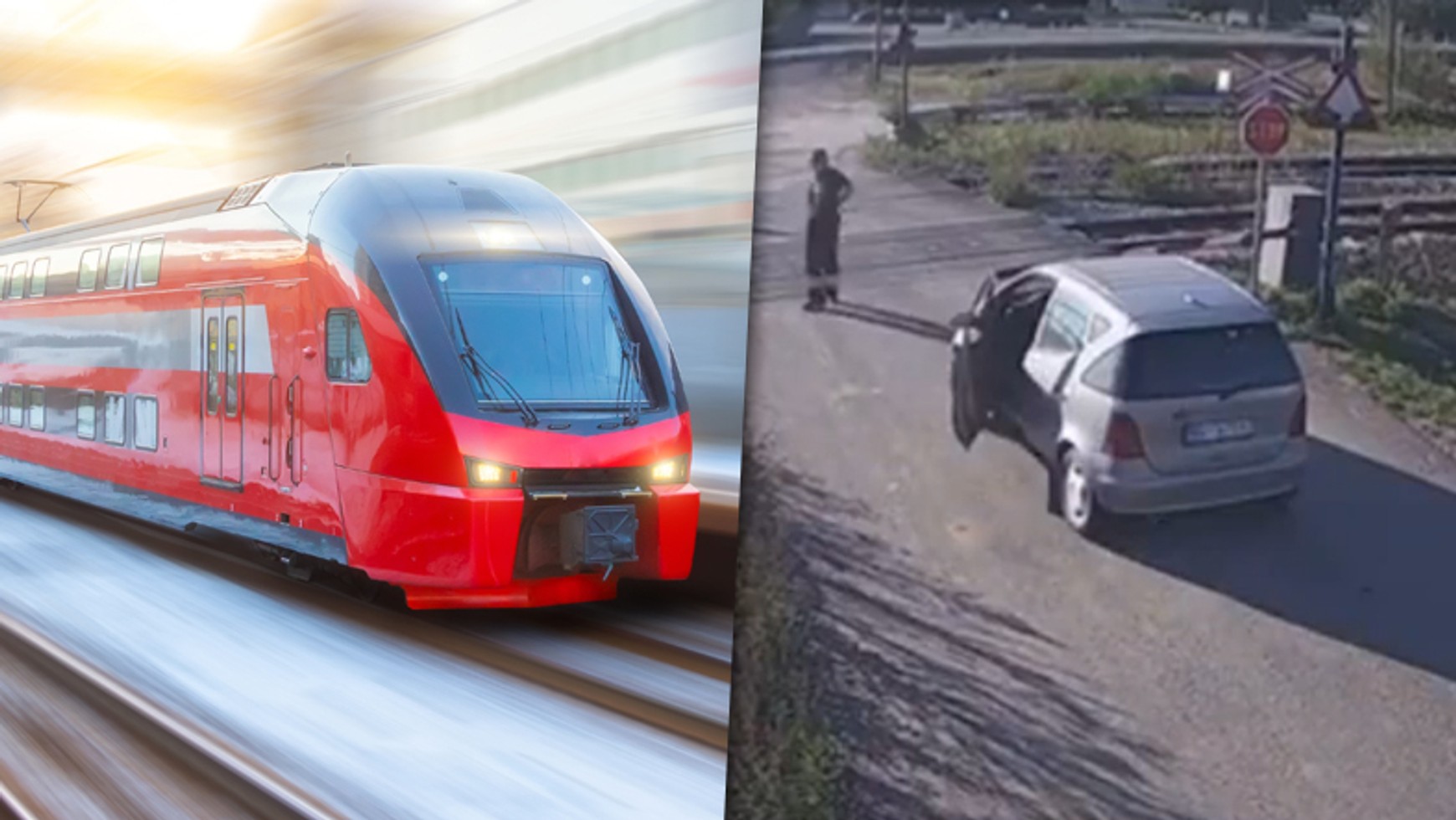 Rozpędzony pociąg prawie zmiażdżył kierowcę Mercedesa