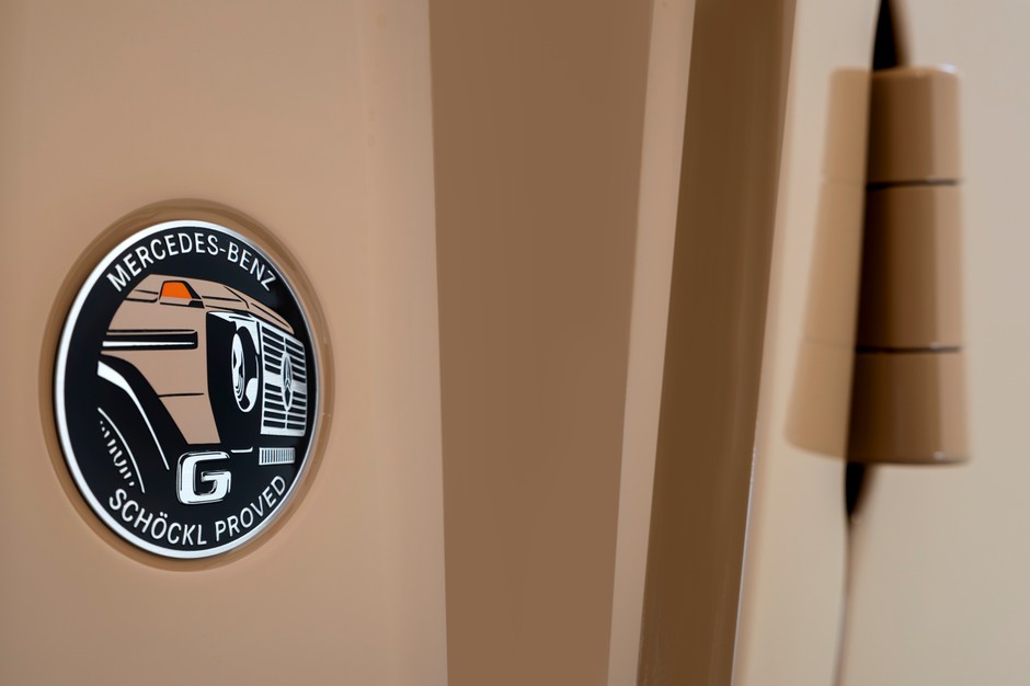 Wnętrze pojazdu (tutaj także widać mocne inspiracje wczesnymi Mercedesami G) zdobią wstawki z tkaniny w szare kraty Dove Grey oraz plakietka "1 z 460" umieszczona na konsoli środkowej. Uchwyt pasażera ozdobiony jest napisem "STRONGER THAN THE 1980s", a na progach przednich drzwi umieszczono topograficzną mapę góry Schöckl — miejsca testów w Grazu w Austrii, gdzie powstaje Klasa G. Produkcja tej edycji zostanie ograniczona do 460 egzemplarzy. To nawiązanie do kodu modelu pierwszej klasy G — W460. Technicznie auto bazuje na wersjach G 450 d lub G 500.