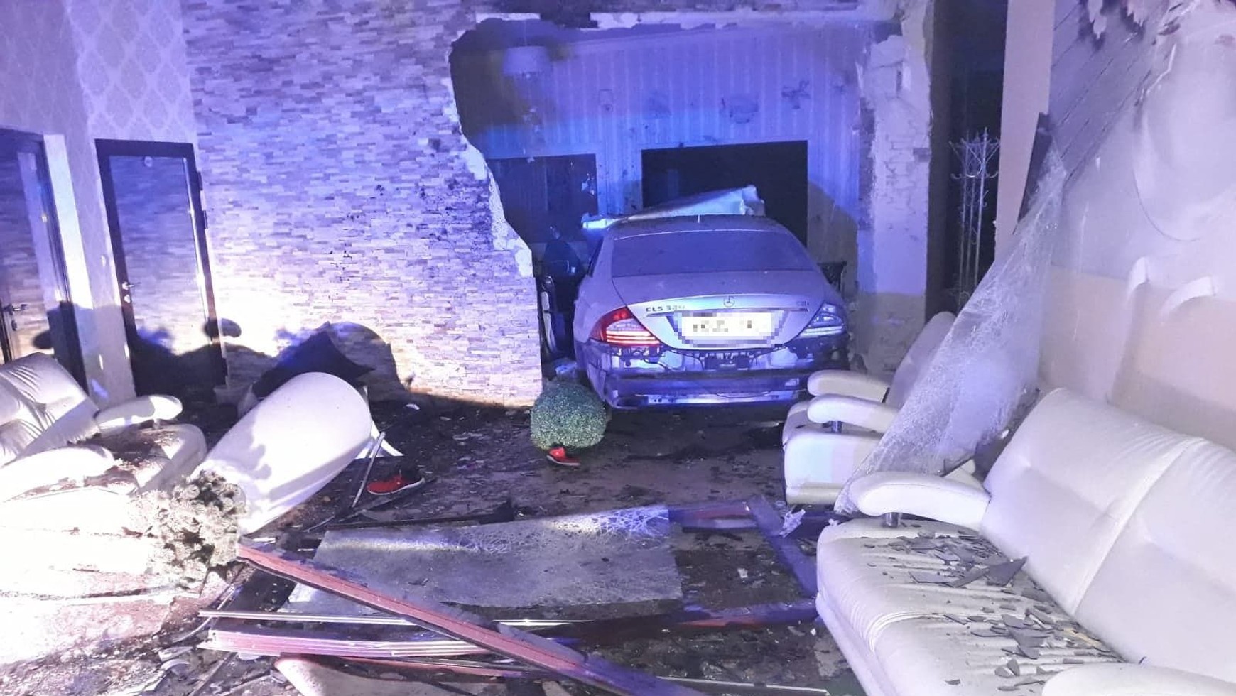 Do zdarzenia doszło w Aleksandrowie (powiat bydgoski). Młody kierowca luksusowego Mercedesa CLS stracił panowanie nad autem, zjechał z drogi i zatrzymał się dopiero we wnętrzu budynku. Okazało się, że miał ponad dwa promile alkoholu w organizmie.