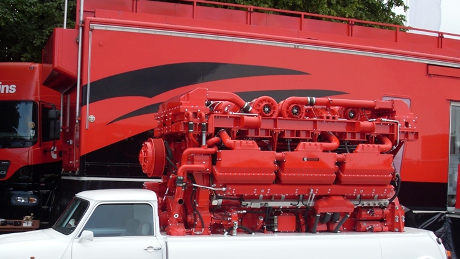 Po trzecie, silnik, który zamontowano pod maską, wróć – na nadwoziu tego Mini, to największy silnik wysokoprężny w Wielkiej Brytanii, a ja uważam, że na całym świecie. Ma, i teraz uważajcie, 78 litrów pojemności i 18 cylindrów, dzięki czemu wypluwa z siebie 3500 KM i 13771 Nm momentu obrotowego.
