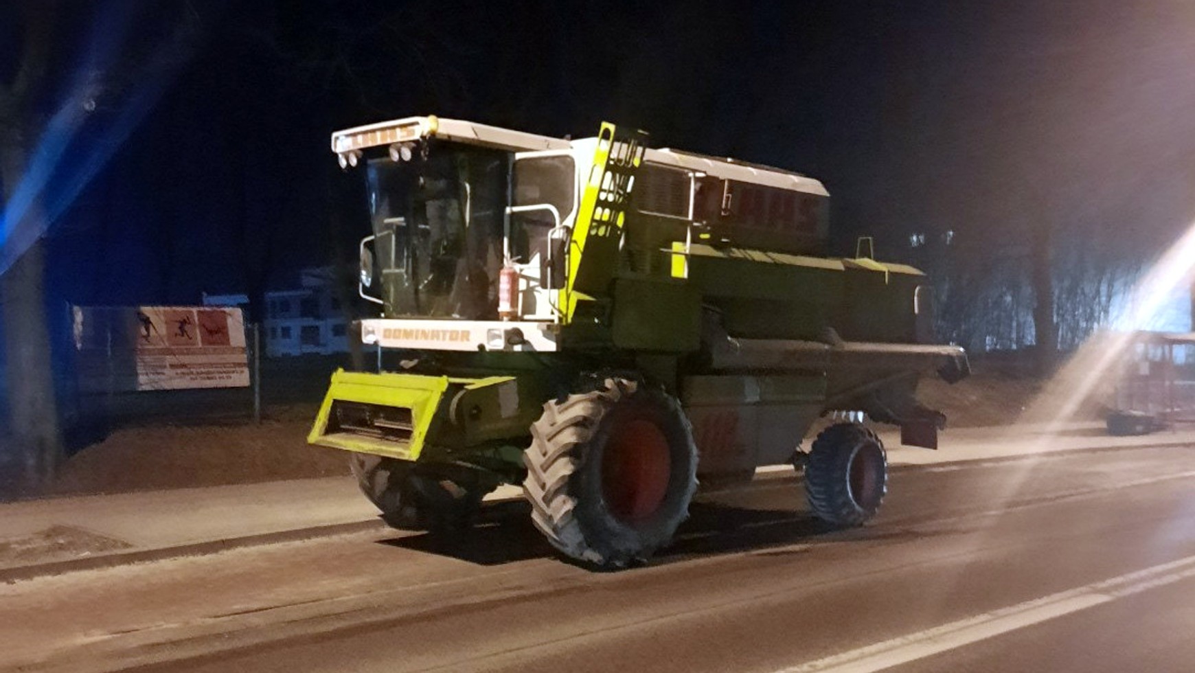 Wezwani na miejsce funkcjonariusze patrolujący okoliczne drogi zastali kombajn na rondzie na al. Piłsudskiego w Mławie. Zatrzymany do kontroli rolnik nie tłumaczył się jednak nietypowymi jak na zimę zbiorami plonów tylko zakupem maszyny. Do transakcji doszło w miejscowości Brodnica, a kierowca zmierzał do swojego domu w pow. ciechanowskim.