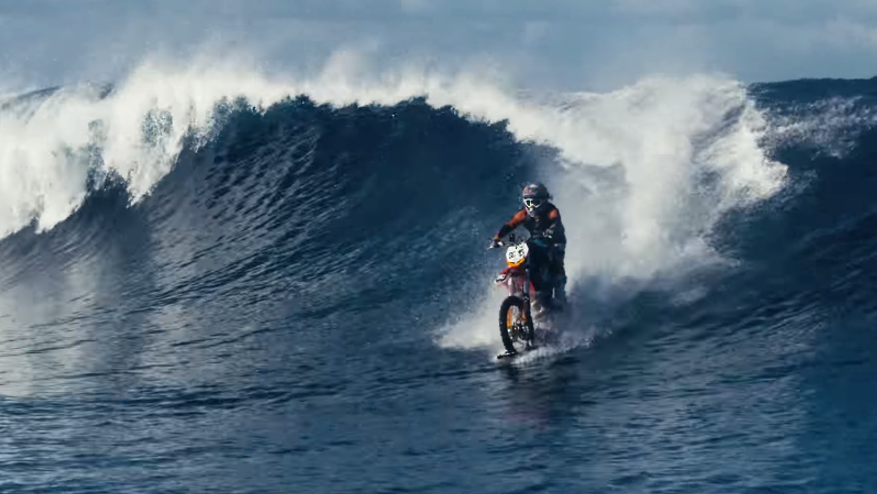 Na taki pomysł wpadł Robbie Maddison, utalentowany wirtuoz szpanerskiej jazdy na dwóch kołach. Australijczyk ma już koncie najdłuższy skok motocyklem (106,98 m), fikał także po Tower Bridge w Londynie i Łuku Triumfalnym w Paryżu. Dlatego też na swój mokry wyczyn wybrał nie pierwsze lepsze jezioro, lecz... ocean u wybrzeży Tahiti.