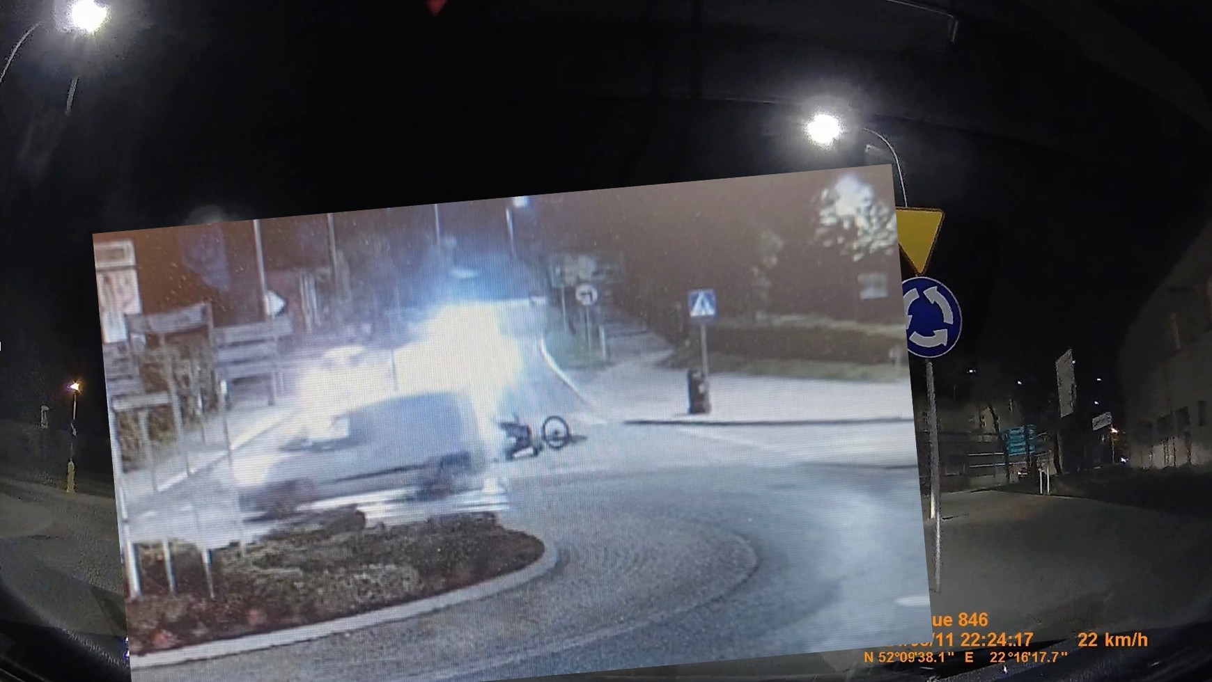 Na rondzie Jezuickim w Krasnymstawie działa monitoring miejski, który zapewne ułatwił nie tylko ustalenie prawdziwego przebiegu zdarzenia, lecz także sprawcy. Na rondo wjechał rowerzysta. Trudno stwierdzić, czy miał zamiar kontynuować jazdę po rondzie czy też chciał je opuścić drugim zjazdem, niewątpliwie jednak miał pierwszeństwo przed samochodem, który chwilę później wjeżdżał na rondo z prawej strony.