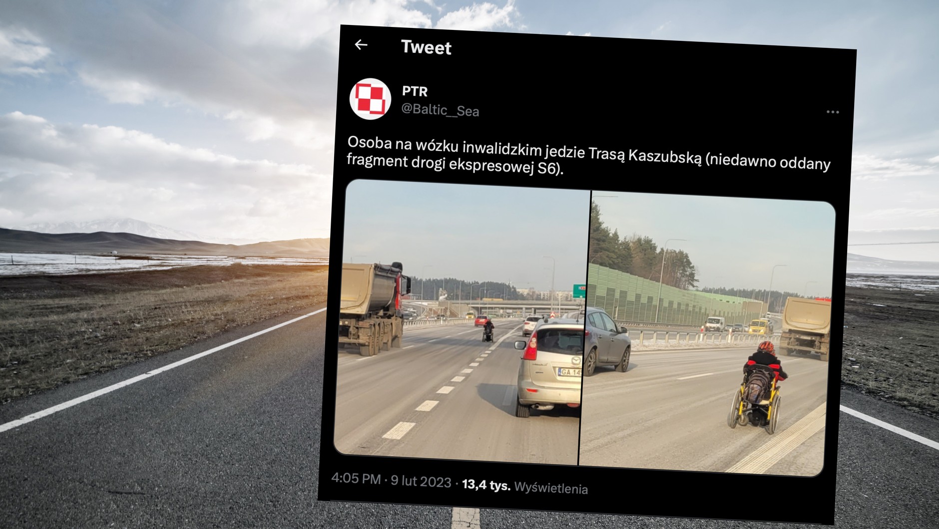 W drugiej połowie grudnia 2022 r. drogowcy oddali do użytku fragment drogi ekspresowej S6, tzw. Trasę Kaszubską. Nikomu chyba nie trzeba tłumaczyć, że droga ekspresowa pozwala rozwijać znacznie wyższą prędkość niż na lokalnych trasach, nie mówiąc już o miejskich ulicach. Tymczasem nowo oddanym do użytku fragmentem S6 poruszała się osoba na... wózku inwalidzkim.