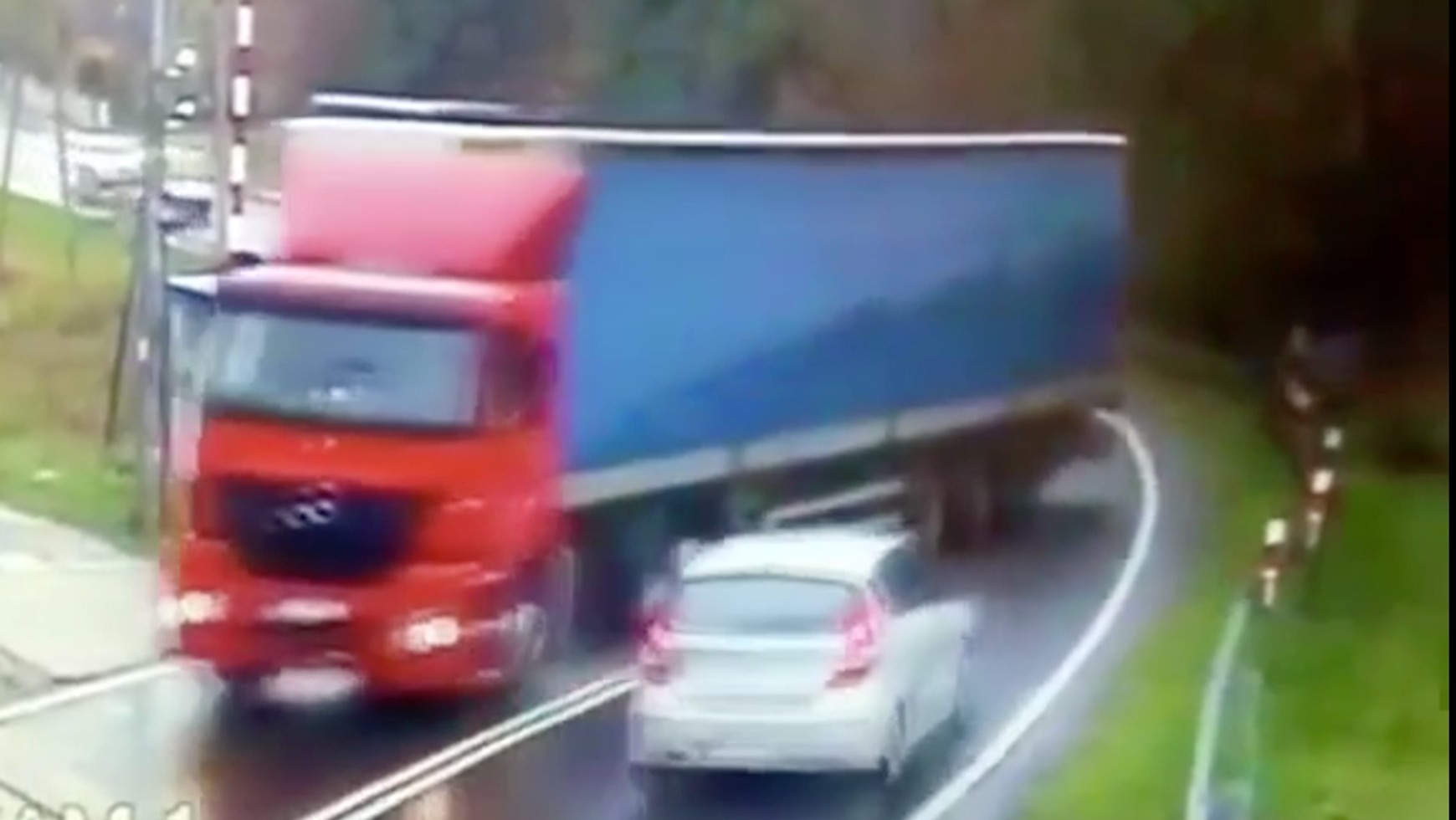 Całą sytuację zarejestrowała kamera na przejeździe kolejowym. Do zdarzenia doszło w środę po godzinie 10. na krajowej "42" w miejscowości Bugaj.